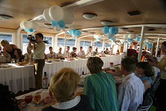 Свадьба – один из самых ярких и запоминающихся моментов в жизни каждого человека. Свадебное торжество – это день когда все вокруг сияет любовью и счастьем. Проведение свадьбы на теплоходе уже давно стало традиционным для России. Только представьте себе, как счастливые красавцы-молодожены поднимаются на борт белоснежного теплохода в окружении своих гостей и в окружении изысканной роскоши начинают свое плавание по океану семейной жизни. Все хлопоты, связанные с арендой теплохода и организацией торжества, уже позади, и Вам остается только наслаждаться непередаваемой атмосферой праздника. Теплоход и свадьба – поистине изысканное сочетание.