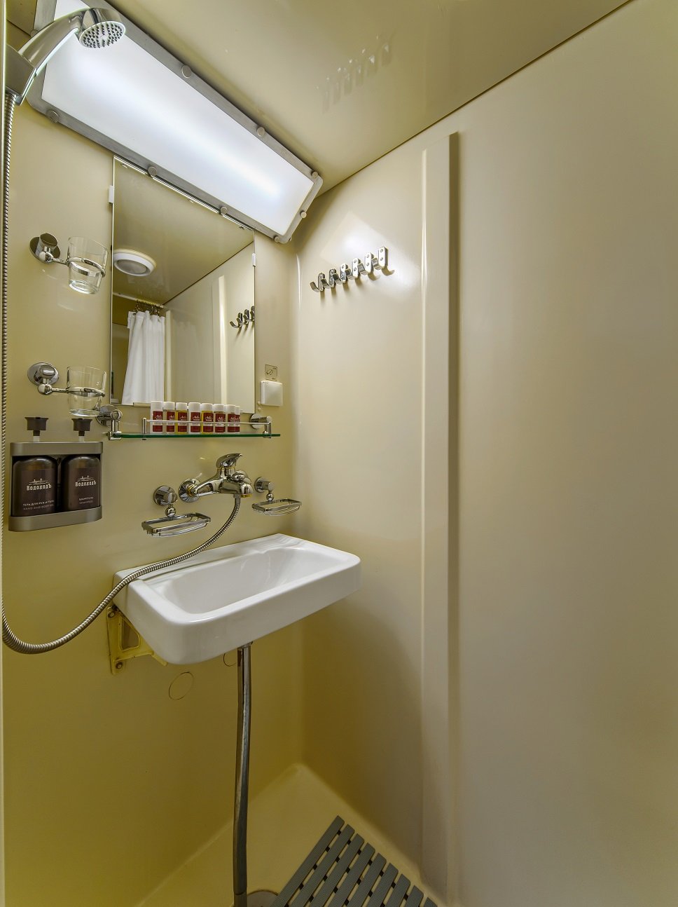 Нижняя палуба | Четырехместная двухъярусная Однокомнатная двухъярусная каюта, рассчитанная на размещение до четырех человек В каюте: четыре спальных места (два внизу, два вторым ярусом), шкаф для одежды, холодильник, радио, душ, санузел, кондиционер, два иллюминатора, электророзетка на 220V. Площадь каюты - 12,81 кв.м. | 2-местное размещение | нет |