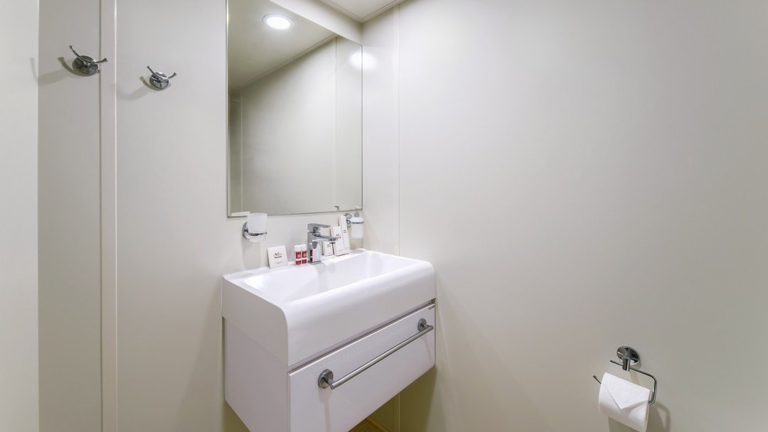 | Средняя палуба | Двухместная одноярусная Однокомнатная одноярусная каюта с удобствами, рассчитанная на размещение двух человек В каюте: двуспальная либо две односпальные кровати, холодильник, телевизор, шкаф для одежды, радио, сейф, обзорное окно, душ, санузел, кондиционер, фен, электророзетка на 220V.В каютах 401, 402, 404, 410, 411, 431-434 (шлюпочная палуба), 319-322, 339, 340, 345, 346, 365, 366, 369, 370 (средняя палуба) — две односпальные кровати размером 80х180 см, площадь каюты 10 м2 | 2-местное размещение | ✔ |