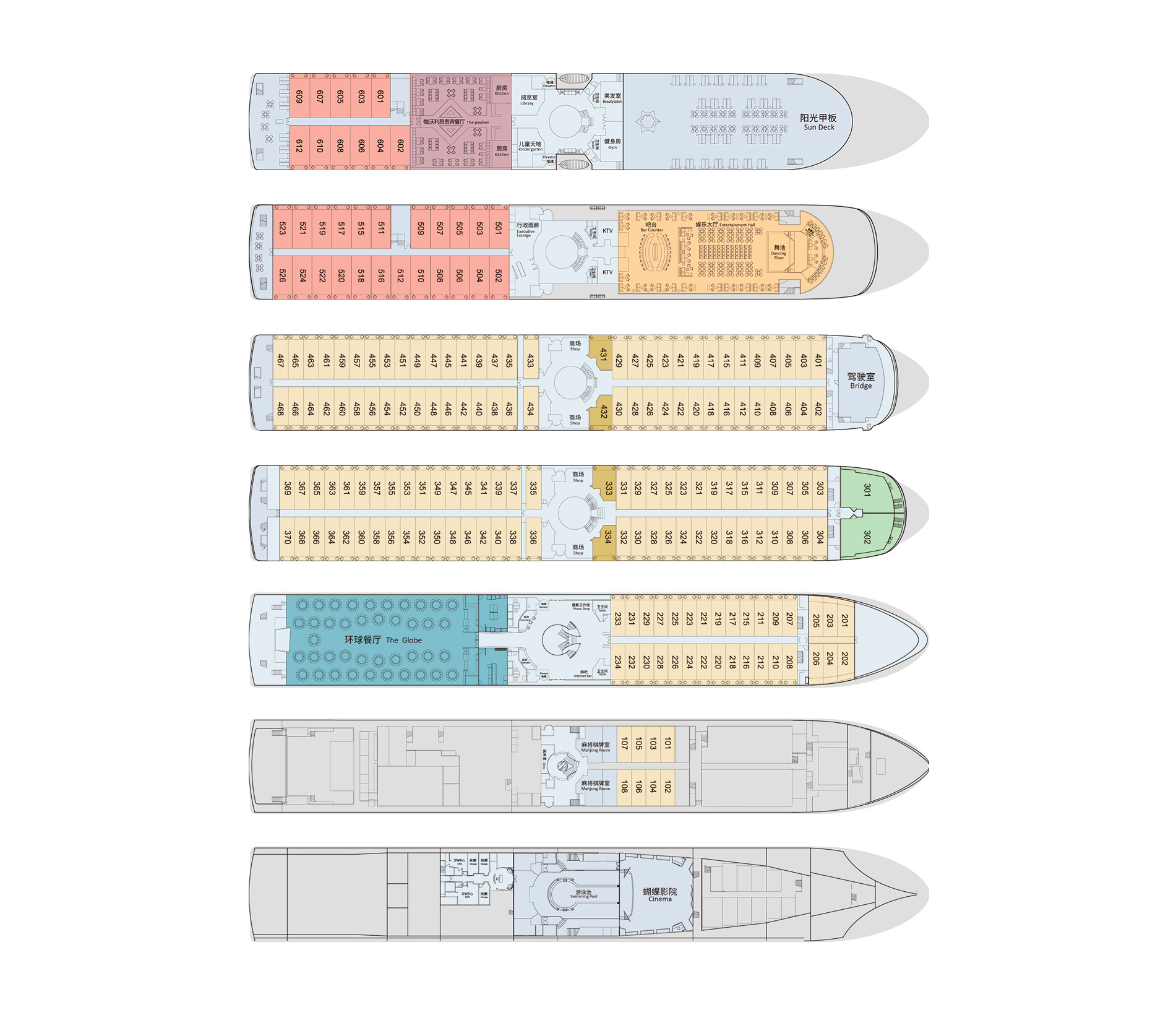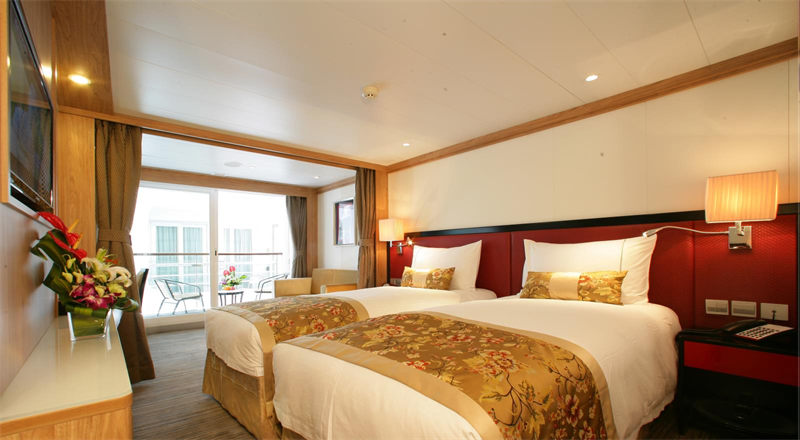 Палуба 6 | Представительский люкс с балконом (Палуба 6) Двухместная каюта со всеми удобствами, расположенная на шестой палубе.Площадь каюты ≈ 38,5 м². Размер кровати 2,0х1,0 м (не трансформируются). Бутилированная вода доставляется в каюту ежедневно. Возможно размещение третьего человека на дополнительном спально месте. В каюте: две односпальные кровати, ванная комната (раковина, душевая кабина с ванной, туалет), система кондиционирования воздуха, спутниковое телевидение, питьевая вода (ежедневно), чайник и чайный набор, туалетные принадлежности, приветственный набор, стеклянная балконная дверь, персональный балкон с мебелью для отдыха. | 2-местное размещение | нет |