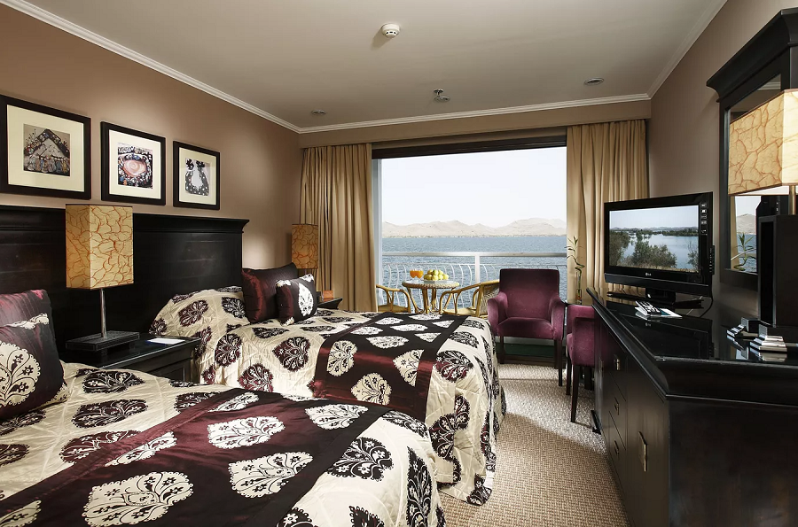 Палуба 3 | Twin (type IV) К категории Twin (type IV) относятся каюты: 301, 303–308, 310.Двухместная каюта со всеми удобствами, расположенная на третьей палубе.Площадь каюты ≈ 24 м². Обращаем внимание! При размещении на теплоходе Crown Jubilee в каюте – обзорное окно (без французского балкона). Соответствие кают с теплоходом Crown Jubilee: Omar El Khayam Crown Jubilee 301 Twin (type IV) 103 Standard 303 Twin (type IV) 105 Standard 304 Twin (type IV) 102 Standard 305 Twin (type IV) 107 Standard 306 Twin (type IV) 104 Standard 307 Twin (type IV) 109 Standard 308 Twin (type IV) 106 Standard 310 Twin (type IV) 108 Standard Бутилированная вода – ежедневное пополнение (0,5 л/чел). Есть возможность поставить дополнительную кровать для ребенка. В каюте: одна двуспальная кровать (при необходимости трансформируется в две односпальные кровати), ванная комната (раковина, ванна, туалет), фен, тумбочки, шкаф для одежды, стол, пуф, спутниковое телевидение, индивидуальный кондиционер, холодильник, кресло, журнальный столик, розетки 220V, сейф, стеклянная балконная дверь-окно, персональный балкон с мебелью для отдыха. | 2-местное размещение | ✔ |