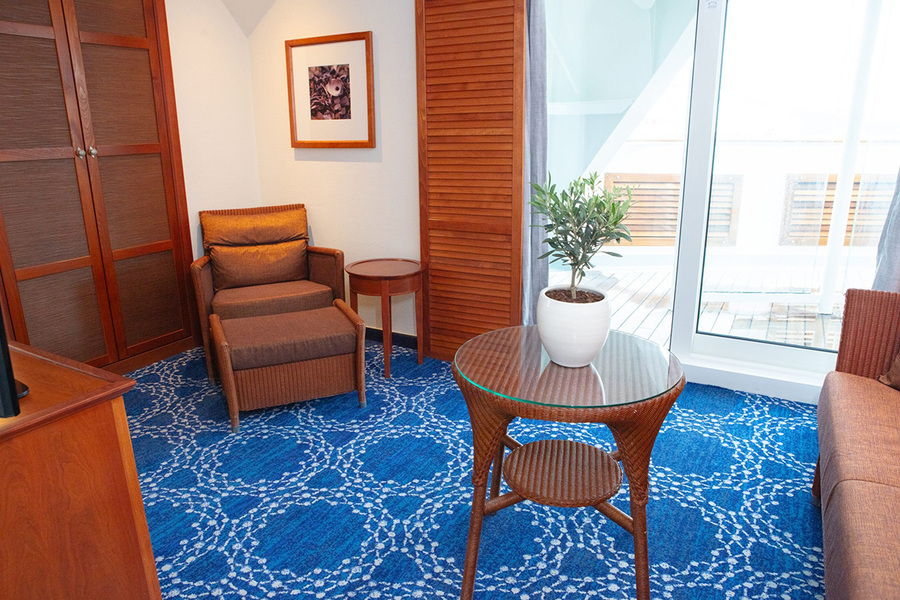 Deck 6 | Сьют с балконом Junior Dream Suite (SJA) Сьют с балконом Junior Dream Suite (SJA) – двухместная каюта, расположенная на 6 палубе.Площадь каюты ≈ 25 м² (включая балкон). Максимальная вместимость: 4 человека. Консьерж-сервис. В каюте: двуспальная кровать, ванная комната (раковина, душ, туалет), диван, кондиционер, телевизор, телефон, сейф, фен, мини-бар, персональный балкон с мебелью для отдыха. | 2-местное размещение | ✔ |