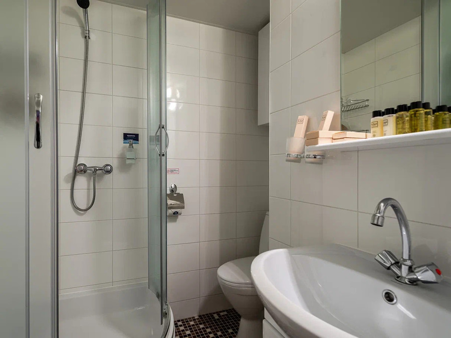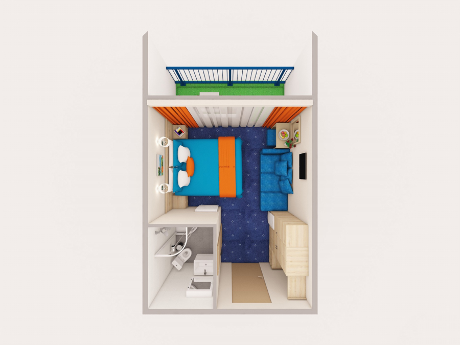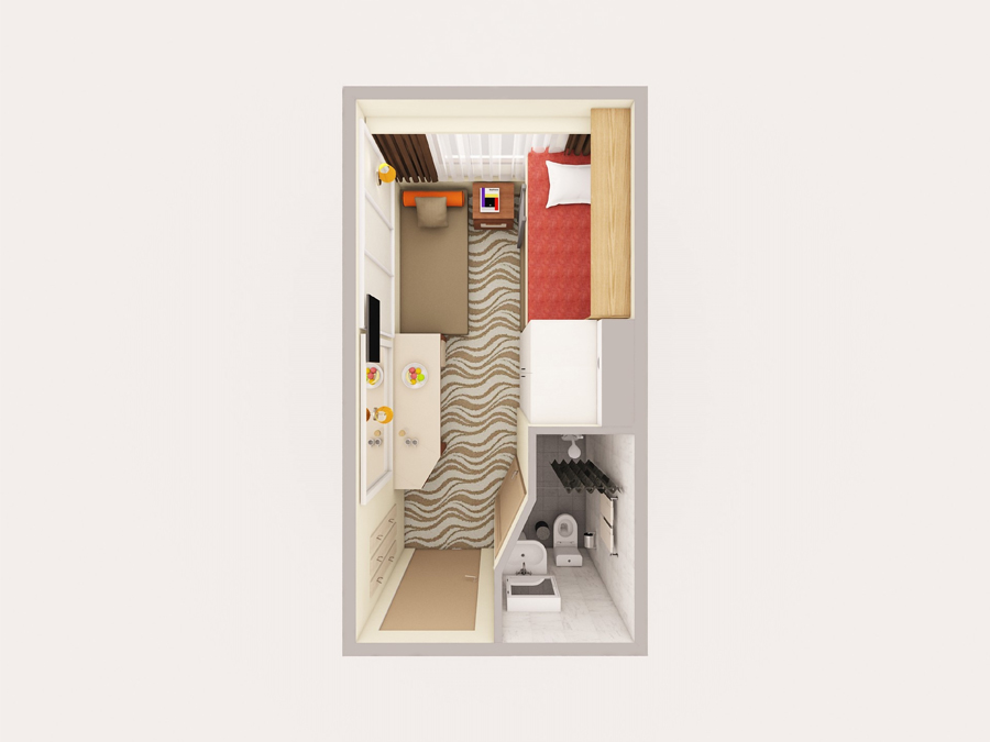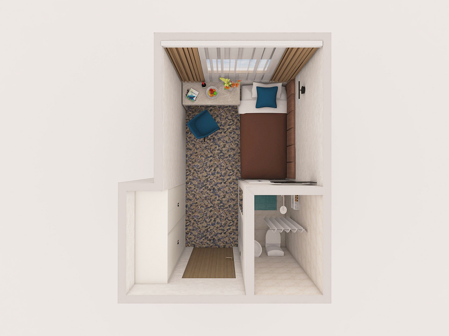 Шлюпочная палуба | А1 комфорт К категории А1 комфорт относятся каюты: 429, 430.Одноместная каюта со всеми удобствами, расположенная на шлюпочной палубе. Площадь каюты ≈ 6 м².В каюте: односпальная кровать, ванная комната (раковина, душ, туалет), шкаф для одежды, тумба, мягкий пуф, вешалка для верхней одежды, зеркало, радио, телевизор с кабельным и спутниковым вещанием, телефон, холодильник, тапочки, фен, набор посуды, плед, щетка для одежды, кондиционер, розетки 220V, обзорное окно. | 1-местное размещение | ✔ |