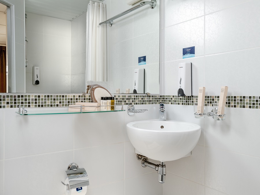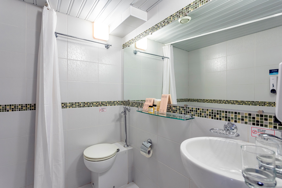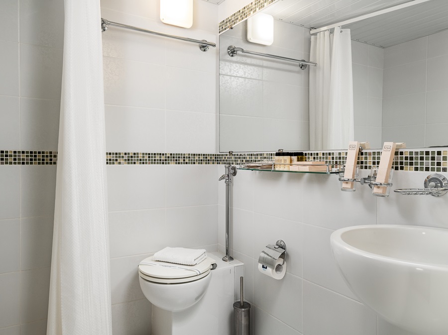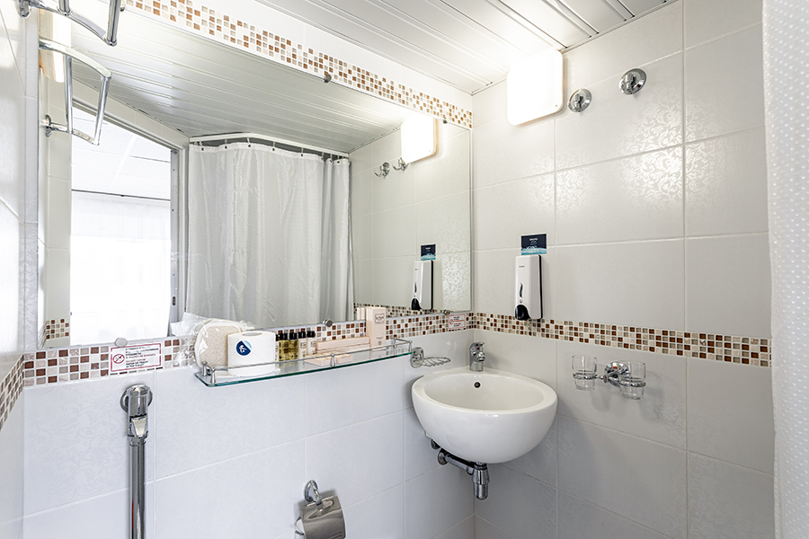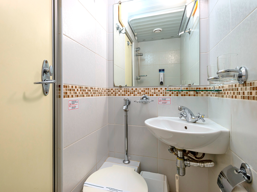 Средняя палуба | А1 комфорт К категории А1 комфорт относятся каюты: 309, 310, 343, 344, 419–424, 426. Одноместная каюта со всеми удобствами, расположенная на средней и шлюпочной палубах. Каюта с эргономичным дизайном и современной отделкой.Площадь каюты от 5,3 до 7,3 м².В каюте: односпальная кровать, ванная комната (раковина, душ, туалет), шкаф для одежды, стол, мягкий пуф, зеркало, вешалка для верхней одежды, настенная полка, радио, телевизор с кабельным и спутниковым вещанием, телефон, сейф, фен, холодильник, индивидуальный плед, тапочки, набор посуды, розетки на 220V, щетка для одежды, кондиционер, обзорное окно. | 1-местное размещение | нет |