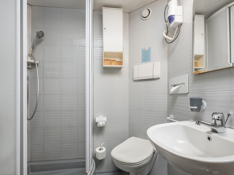 | 3 палуба | Sngl К категории Sngl относятся каюты: 302, 304.Одноместная каюта со всеми удобствами, расположенная на третьей палубе.Площадь каюты ≈ 18 м². Бутилированная вода – ежедневное пополнение (0,5 л/чел). В каюте: односпальная кровать, ванная комната (раковина, душевая кабина, туалет), кондиционер с отдельным блоком управления, спутниковое телевидение, сейф, фен, туалетные принадлежности, мини-бар, питьевая вода, телефон, обзорное окно. | 1-местное размещение | ✔ |