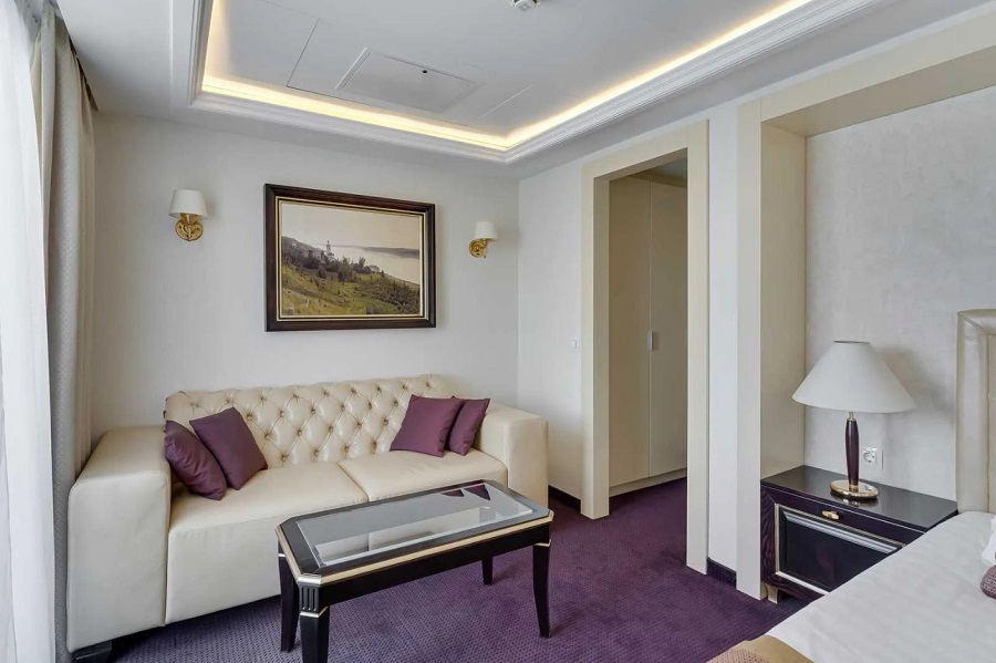 Средняя палуба | Полулюкс+ с балконом (средняя палуба) К категории Полулюкс+ с балконом (средняя палуба) относятся каюты: 307–310, 315.Двухместная каюта с балконом и со всеми удобствами, расположенная на средней палубе. Площадь каюты ≈ 15 м2. Площадь балкона ≈ 6 м2. Размер кровати – 160х200 см. Доступ к Wi-Fi предоставляется с ограничением трафика. Возможно размещение третьего человека (ребенок до 14 лет включительно) на дополнительном спальном месте – еврораскладушка. В каюте: двуспальная кровать (можно раздвинуть), кондиционер/обогреватель, телевизор, сейф, внутренний телефон, фен, холодильник, стеклянные стаканы для питья, щетка для одежды, тапочки, панорамный оконно-дверной блок, с выходом на индивидуальный балкон.В ванной комнате: душ, зеркало, 2 стакана, туалетные принадлежности (мыло, шампунь, гель для душа в тюбиках, туалетная бумага), комплект полотенец (полотенце банное большое, полотенце для рук среднее). | 2-местное размещение | ✔ |