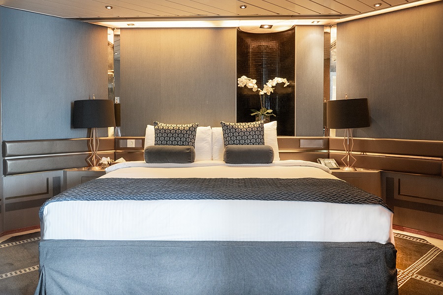 | DECK 10 | Сьют с балконом Stargazer Suite (SP) Сьют с балконом Stargazer Suite (SP) – двухместная каюта, расположенная на 10 палубе.Площадь каюты ≈ 88 м². Максимальная вместимость: 3 человека.В каюте: двуспальная кровать, ванная комната (раковина, душ, джакузи, туалет), диван, стол, стулья, туалетный стол с зеркалом, кондиционер, телевизор, телефон, сейф, фен, мини-бар, персональный балкон с мебелью для отдыха. | 2-местное размещение | ✔ |