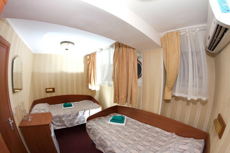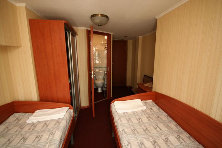 Нижняя палуба | Стандарт B К категории Стандарт B относятся каюты: 115, 116.Двухместная каюта со всеми удобствами, расположенная на нижней палубе.Площадь каюты ≈ 9,6 м².В каюте: две односпальные кровати, ванная комната (раковина, душ, туалет), холодильник, шкаф для одежды, система кондиционирования, иллюминаторы. | 2-местное размещение | нет |