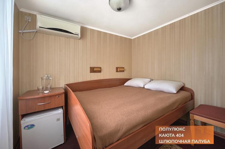 Нижняя палуба | Стандарт А К категории Стандарт A отностятся каюты: 103–106 .Двухместная каюта со всеми удобствами, расположенная на нижней палубе.Площадь каюты от 8,2 до 8,9 м².В каюте: две односпальные кровати, ванная комната (раковина, душ, туалет), холодильник, шкаф для одежды, графин, система кондиционирования, радио, розетка, иллюминаторы. | 2-местное размещение | ✔ |