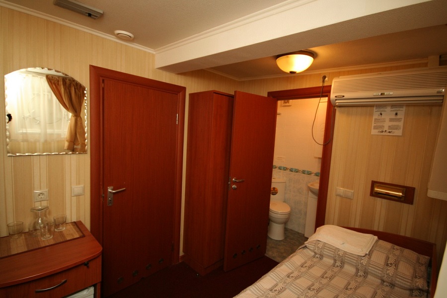 Средняя палуба | Сингл (средняя палуба) К категории Сингл (средняя палуба) относятся каюты: 321–326.Одноместная каюта со всеми удобствами, расположенная на средней палубе.Площадь каюты ≈ 7,1 м².В каюте: односпальная кровать, холодильник, ванная комната (раковина, душ, туалет), шкаф для одежды, система кондиционирования, обзорные окна. | 1-местное размещение | нет |