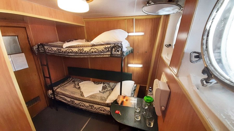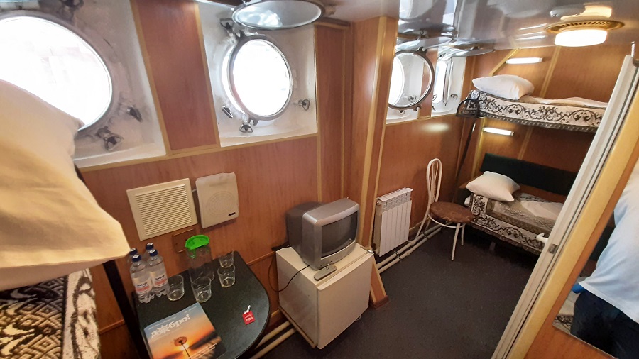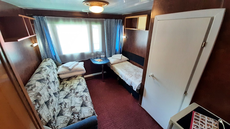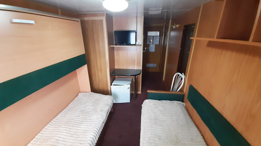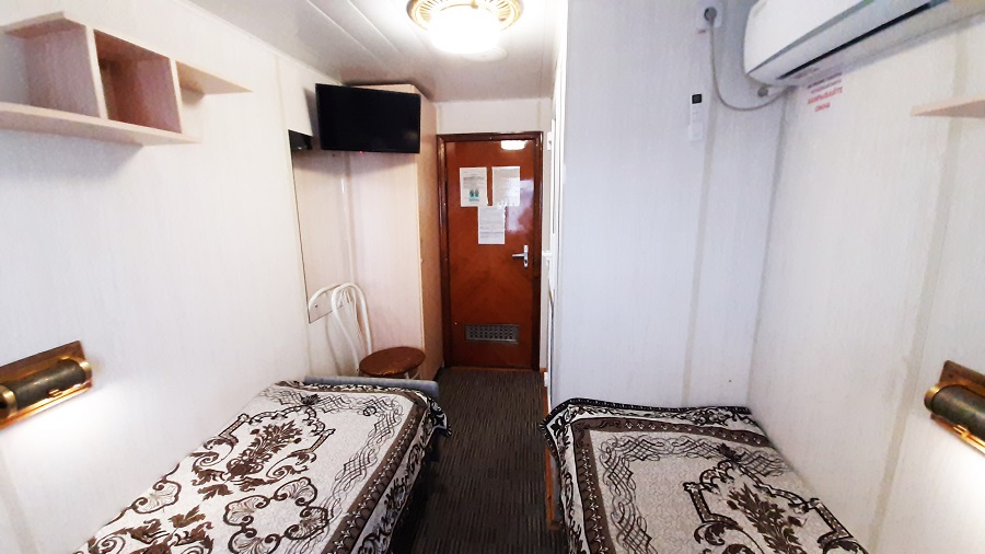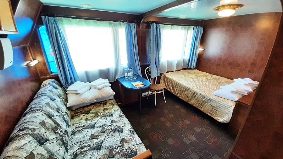 Средняя палуба | 1А К категории 1А относятся каюты: 217, 221, 223, 225, 227, 229, 231.Двухместная каюта с частичными удобствами, расположенная на средней палубе.Площадь каюты ≈ 7 м².В каюте: две односпальные кровати, раковина с холодной и горячей водой, шкаф для одежды, стол, мини-холодильник, телевизор, радио, розетка 220V, обзорное окно. | 2-местное размещение | нет |