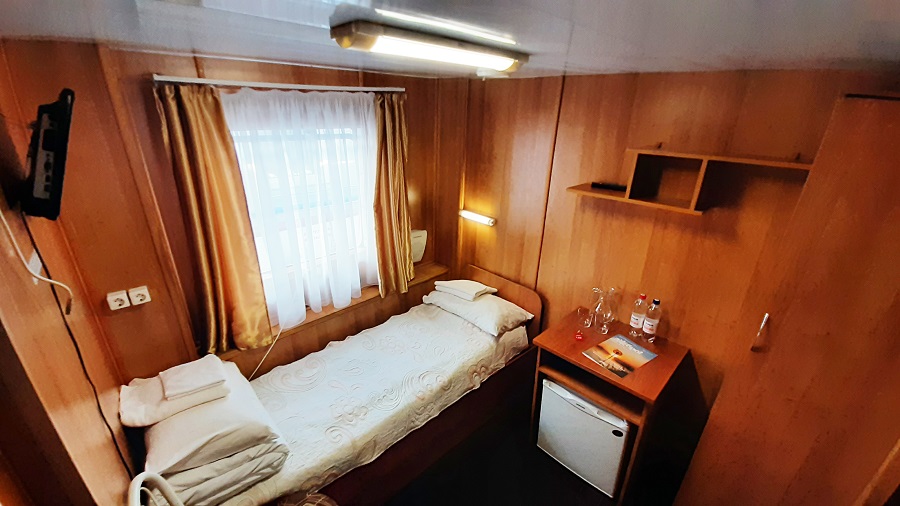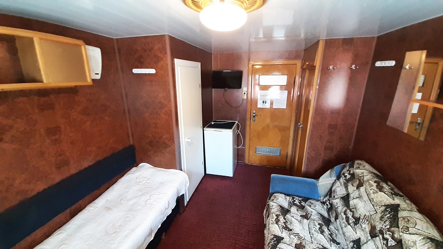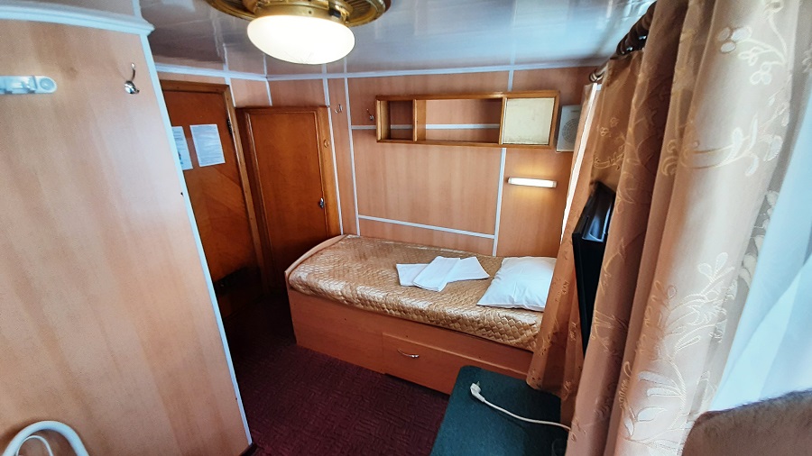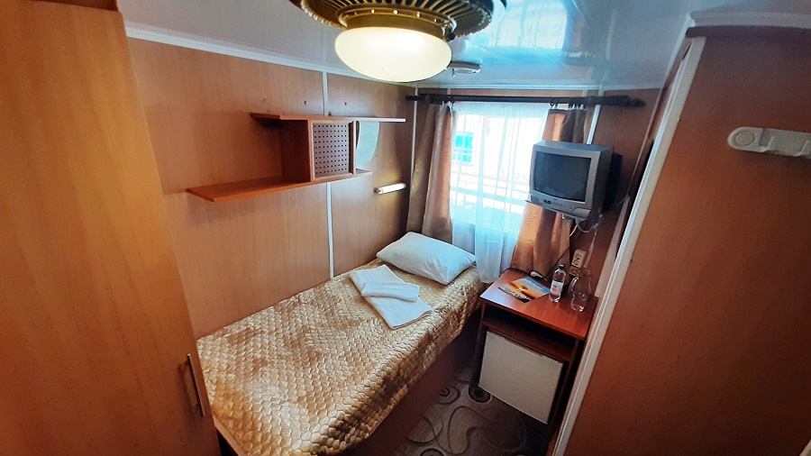 Средняя палуба | 1 К категории 1 относится каюта: 205б.Одноместная каюта с частичными удобствами, расположенная на средней палубе.Площадь каюты ≈ 7 м².В каюте: односпальная кровать, раковина с холодной и горячей водой, шкаф для одежды, стол, кондиционирование, мини-холодильник, телевизор, радио, розетка 220V, обзорное окно. | 1-местное размещение | нет |