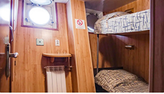 Нижняя палуба | Дзета К категории Дзета относятся каюты: 001а, 001б, 002а, 002б.Двухместная двухъярусная каюта со всеми удобствами, расположенная на нижней палубе.Площадь каюты ≈ 7,5 м².В каюте: двухъярусная кровать, ванная комната (раковина, душ, туалет), шкаф для одежды, стол, мини-холодильник, телевизор, радио, розетка 220 V, иллюминаторы. | 2-местное размещение | нет |