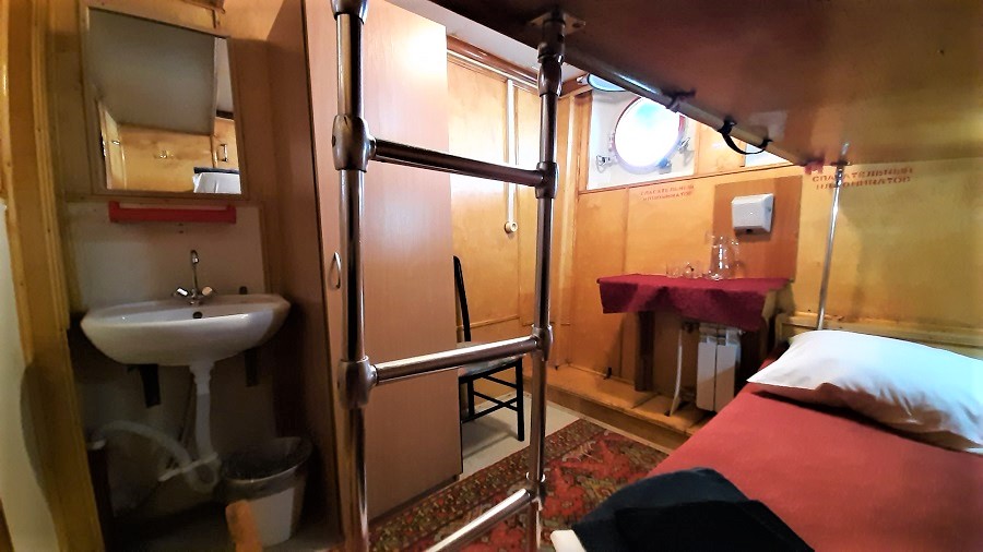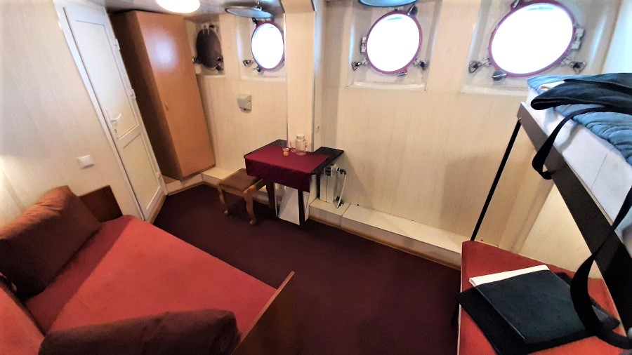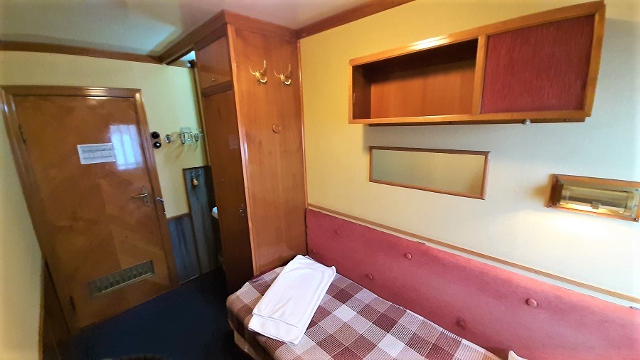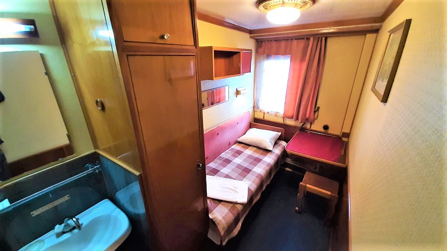 Средняя палуба | 1 К категории 1 относятся каюты: 20, 21.Одноместная каюта с частичными удобствами, расположенная на средней палубе.Площадь каюты ≈ 4,5 м².В каюте: односпальная кровать, раковина с холодной и горячей водой, шкаф для одежды, радио, розетка 220V, обзорное окно. | 1-местное размещение | нет |