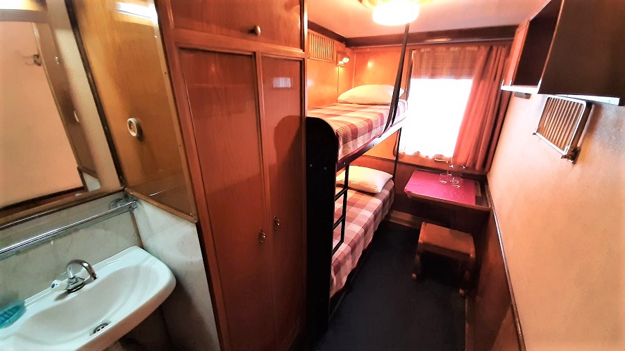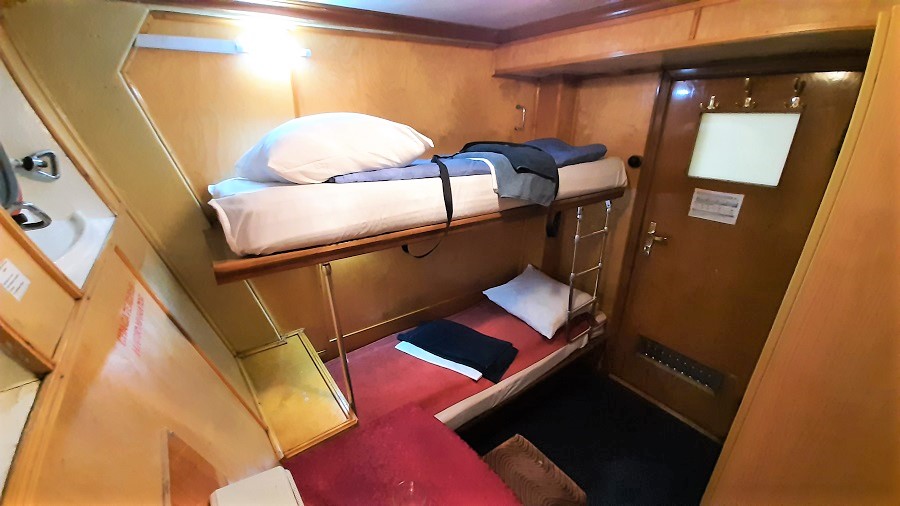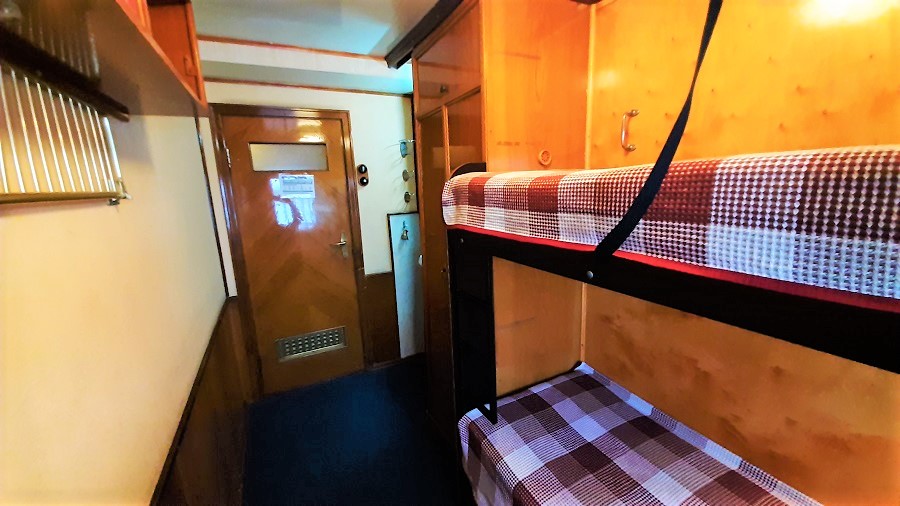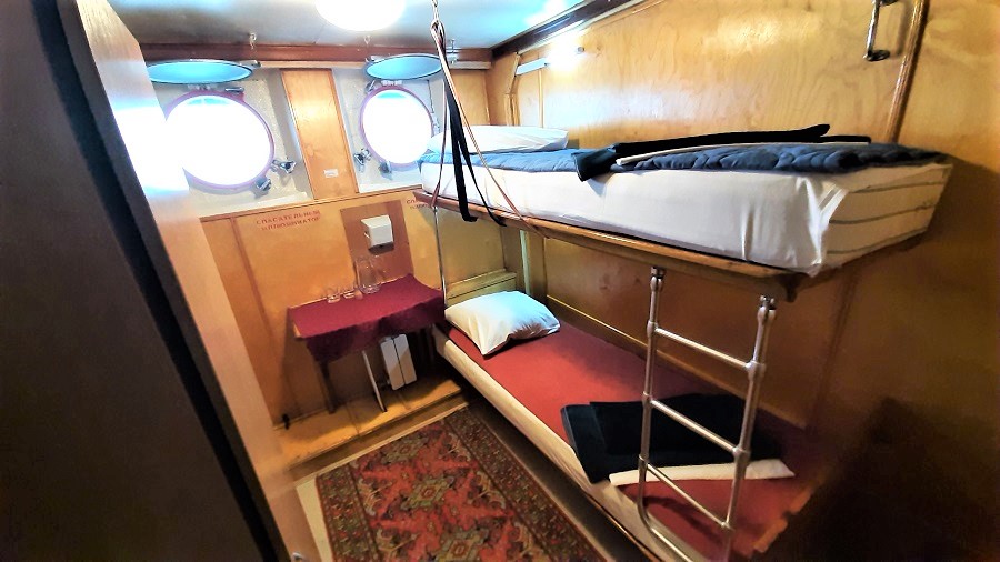Главная палуба | 2А К категории 2А относятся каюты: 88–96, 98, 100, 102.Двухместная двухъярусная каюта с частичными удобствами, расположенная на главной палубе.Площадь каюты ≈ 4,5 м².В каюте: двухъярусная кровать, раковина с холодной и горячей водой, настенная вешалка для одежды, радио, розетка 220V, обзорное окно. | 2-местное размещение | ✔ |