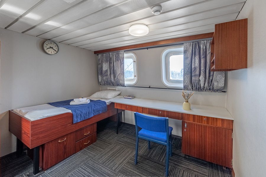 400 уровень | Супериор К категории Супериор относятся каюты: 413, 415, 418, 420.Двухместная каюта со всеми удобствами, расположенная на 400 уровне.Площадь каюты ≈ 12 м². В каютах 413, 420 – двухъярусная кровать и диван. В каюте: две односпальные кровати, стол, шкаф для одежды, тумбочки, ванная комната (раковина, душ, туалет), окно. | 2-местное размещение | ✔ |