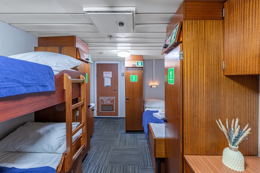 300 уровень | Стандарт 2П К категории Стандарт 2П относятся каюты: 311, 312, 314, 322, 327.Место в двухместной каюте с частичными удобствами (подселение), расположенной на 300 уроне.Площадь каюты ≈ 12 м².В каюте: две односпальные кровати, стол, шкаф для одежды, тумбочки, раковина, окно. | 2-местное размещение | ✔ |