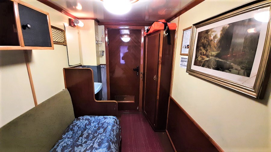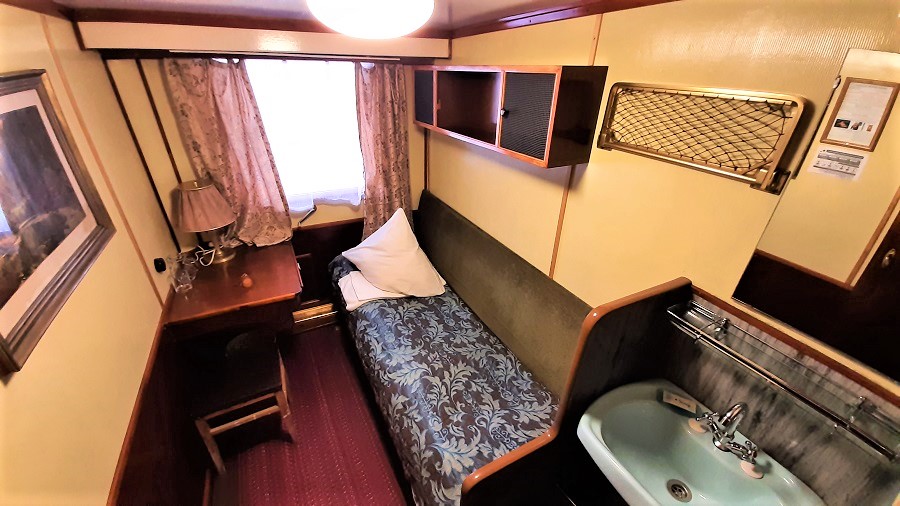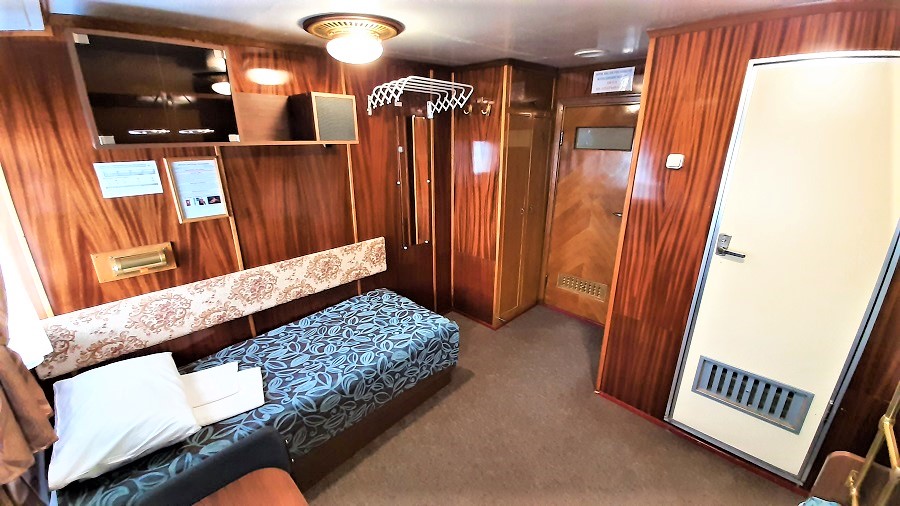Шлюпочная палуба | 1 (1) К категории 1 (1) относятся каюты: 9–12.Одноместная каюта с частичными удобствами, расположенная на шлюпочной палубе. Площадь каюты ≈ 4,5 м².В каюте: односпальная кровать, раковина с горячей и холодной водой, шкаф для одежды, радио, розетка 220V, обзорное окно. | 1-местное размещение | нет |