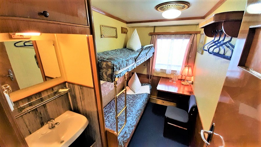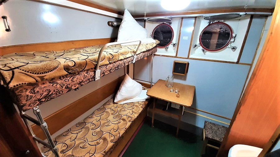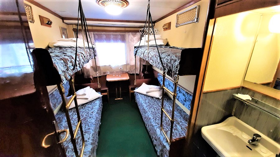 Нижняя палуба | 3А К категории 3А относятся каюты: 120, 121, 130–137.Двухместная двухъярусная каюта с частичными удобствами, расположенная на нижней палубе.Площадь каюты ≈ 5 м².В каюте: двухъярусная кровать, раковина с горячей и холодной водой, шкаф для одежды, радио, розетка 220V, иллюминаторы. | 2-местное размещение | нет |