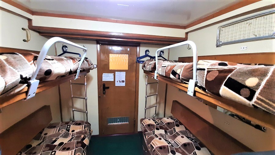 Нижняя палуба | 3 (4) К категории 3 (4) относятся каюты: 138–144, 146.Четырехместная двухъярусная каюта без удобств, расположенная на нижней палубе.Площадь каюты ≈ 5,5 м². Возможно двухместное и трехместное размещение в каюте. В каюте: две двухъярусные кровати, настенная вешалка для одежды, радио, розетка 220V, иллюминаторы. | 4-местное размещение | нет |