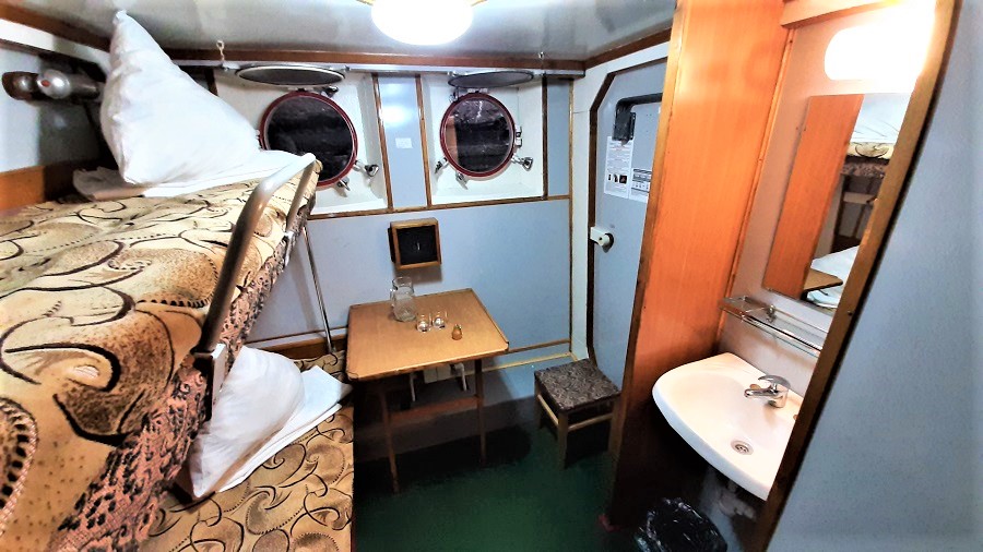 Средняя палуба | Сигма 2-местная К категории Сигма относятся каюты: 27, 58–63.Двухместная двухъярусная каюта со всеми удобствами, расположенная на средней палубе.Площадь каюты ≈ 7,5 м². В каюте 27 есть диван (длина – 160 см). В каюте: двухъярусная кровать, ванная комната (раковина, душ, туалет), кондиционирование, шкаф для одежды, радио, розетка 220V, обзорное окно. | 2-местное размещение | ✔ |
