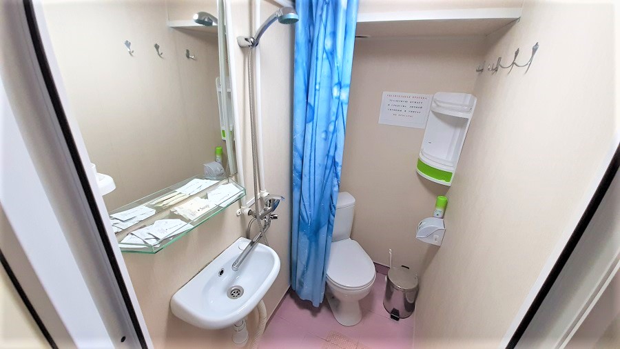 Главная палуба | 2А К категории 2А относятся каюты: 88–96, 98, 100, 102.Двухместная двухъярусная каюта с частичными удобствами, расположенная на главной палубе.Площадь каюты ≈ 4,5 м².В каюте: двухъярусная кровать, раковина с горячей и холодной водой, настенная вешалка для одежды, радио, розетка 220V, обзорное окно. | 2-местное размещение | ✔ |