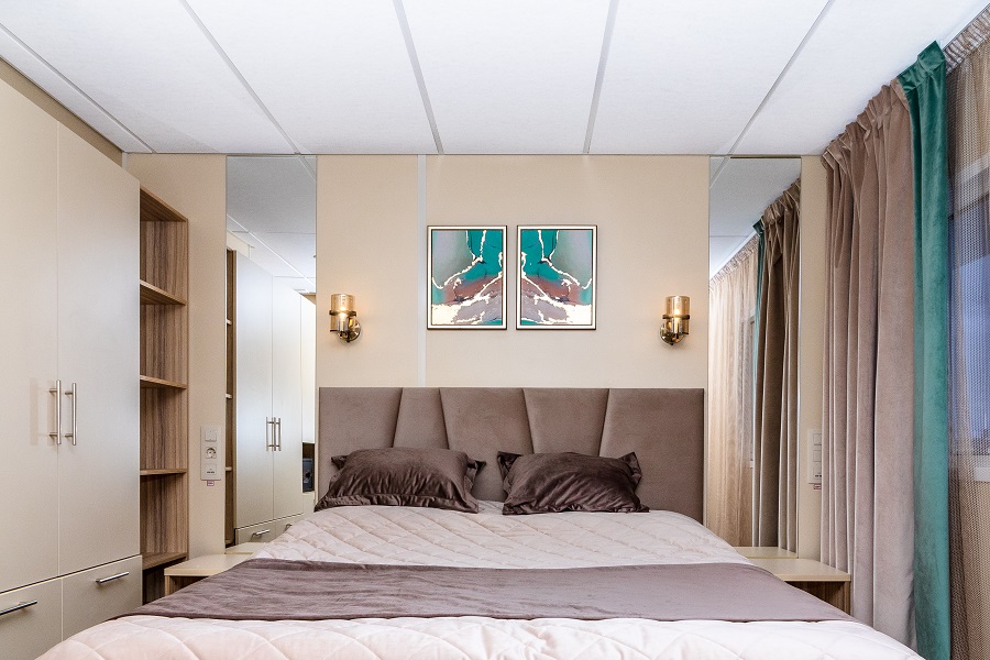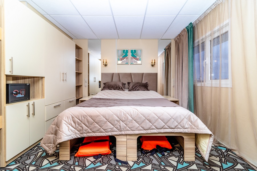 Главная палуба | ПК К категории ПК относятся каюты: 209, 210. Двухместная каюта увеличенной площади со всеми удобствами, расположенная на главной палубе. Площадь каюты от 13 до 13,5 м². Возможно размещение третьего человека на дополнительном месте – двуспальный диван. Размещение ребенка до 5 лет без места и питания, при наличии свободного дополнительного места, производится только по согласованию с судоходной компанией. В каюте: односпальная кровать, двуспальный диван, ванная комната (раковина, душевая кабина, туалет), шкаф, тумба, пуф, стол, настенная полка, сейф, телевизор с кабельным и спутниковым вещанием, холодильник, кондиционер, телефон внутренней связи, фен, плед для каждого туриста, розетки 220 V, радио, обзорные окна.Также к услугам туристов в каюте: косметика для душа, туалетные принадлежности, «приветственный набор» (игристый напиток, фрукты), мини-бар (за дополнительную плату), щетка для одежды, банные халаты, маски для сна, тапочки, набор посуды и столовых приборов, питьевая вода, чайная пара, «приветственный набор» (игристый напиток, фрукты), капсульная кофемашина (одна чашка кофе на человека – в подарок). | 2-местное размещение | нет |