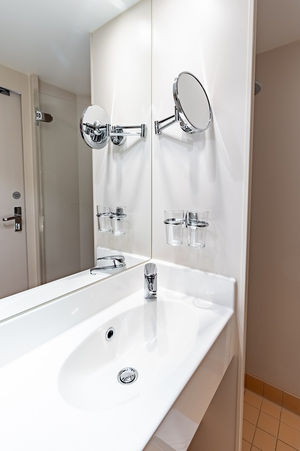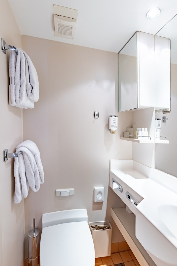 | Middle deck (средняя палуба) | DOUBLE B К категории DOUBLE B относятся каюты: 205-242.Двухместная каюта, расположенная на средней палубе.Площадь каюты ≈ 12 м². В каютах 205-234 – одна двуспальная кровать. В каютах 235-242 – две односпальные кровати. В каюте: одна двуспальная или две односпальные кровати, ванная комната (раковина, душ, туалет), комплект полотенец, фен, шкаф для одежды, холодильник, спутниковое телевидение, телефон внутренней связи, радио, сейф, кондиционер, стеклянная балконная дверь, французский балкон. | 2-местное размещение | ✔ |