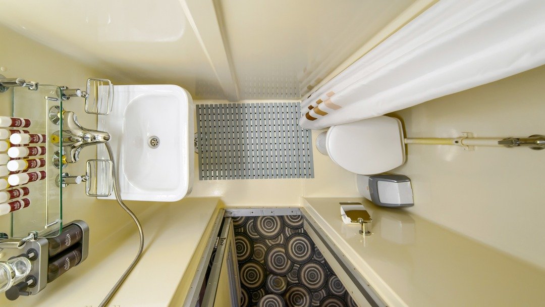 | Шлюпочная палуба | Двухместная Однокомнатная одноярусная каюта, рассчитанная на размещение двух человек В каюте: два спальных места, шкаф для одежды, холодильник, радио, душ, санузел, кондиционер, обзорное окно, электророзетка на 220V.Площадь кают: главная палуба № 203 - № 236 - 9,02 кв.м., средняя палуба № 315 - № 348, № 351 - №362 - 10,45 кв.м., шлюпочная палуба № 403 - № 430 - 9,87 кв.м. | 1-местное размещение | ✔ |