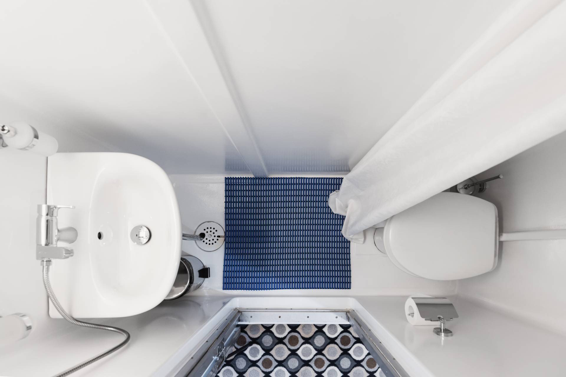 Нижняя палуба | Трехместная двухъярусная Однокомнатная двухъярусная каюта с удобствами, рассчитанная на размещение от двух до трех человек. В каюте: три спальных места (два внизу, одно — вторым ярусом), шкаф для одежды, трюмо, кондиционер, радио, телевизор, холодильник, фен, сейф, обзорное окно, электророзетка на 220V.Расширена площадь санблока, отдельный душ, санузел.Площадь каюты 11 м2.Размер кроватей 80х190 см. | 3-местное размещение | нет |