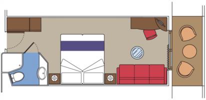 | Guaranty | С балконом DBL С балконом DBL – двухместная каюта (гарантированная), номер каюты будет известен только перед началом круиза. Площадь каюты ≈ 19 м². Площадь балкона ≈ 4 м². Максимальная вместимость: 4 человека.В каюте: две односпальные кровати (при необходимости трансформируются в двуспальную кровать), ванная комната (раковина, душ, туалет), двуспальный раскладной диван, телефон, фен, мини-бар, сейф, кондиционер, интерактивное TV, беспроводной интернет (оплачивается дополнительно), персональный балкон с мебелью для отдыха. | 2-местное размещение | ✔ |