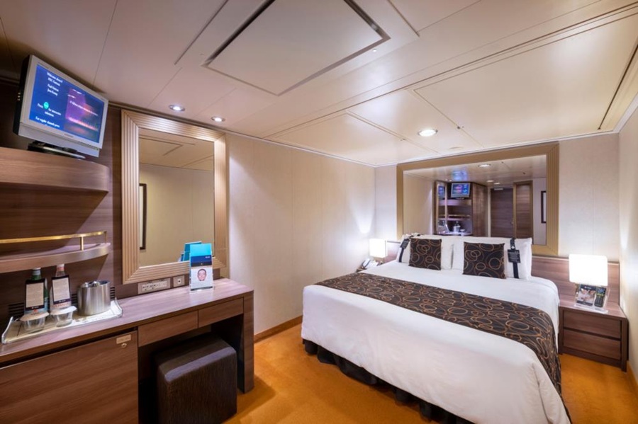| Guaranty | Внутренняя DBL Внутренняя DBL – двухместная каюта (гарантированная), номер каюты будет известен только перед началом круиза.Площадь каюты ≈ 17 м². Максимальная вместимость: 4 человека.В каюте: две односпальные кровати (при необходимости трансформируются в двуспальную кровать), ванная комната (раковина, душ, туалет), телефон, фен, мини-бар, сейф, кондиционер, интерактивное TV, беспроводной интернет (оплачивается дополнительно), каюта без окна. | 2-местное размещение | ✔ |