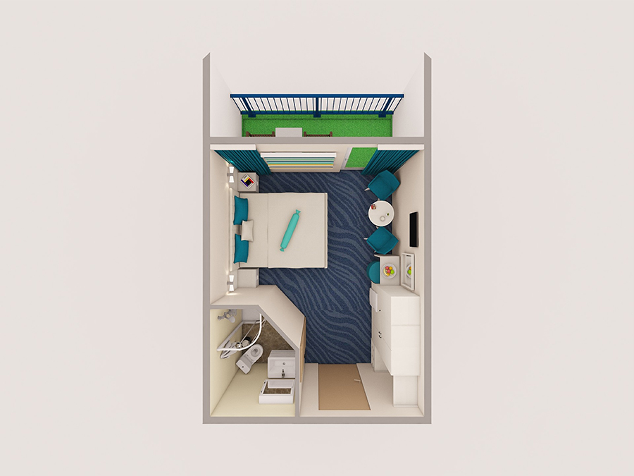 | Главная палуба | ПК-С НОВИНКА 2026. Данное изображение каюты является рендером и несет ознакомительный характер.К категории ПК-С относятся каюты: 202, 203, 204, 207, 208, 211. Двухместная каюта увеличенной площади со всеми удобствами, расположенная на главной палубе. Площадь каюты ≈ 12,2 м². В каюте 207 – одна двуспальная кровать (не раздвигается в две односпальные). Возможно размещение третьего человека на дополнительном месте – верхняя полка. Размер дополнительного места: 190 см длина и 75 см ширина. Размещение ребенка до 5 лет без места и питания, при наличии свободного дополнительного места, производится только по согласованию с судоходной компанией. В каюте: одна двуспальная кровать (при необходимости трансформируется в две односпальные), верхняя полка с ограничителями и лестницей, ванная комната (раковина, душевая кабина, туалет), шкаф для одежды, тумба, пуф, кресло, стол, настенная полка, кондиционер, телевизор с кабельным и спутниковым вещанием, холодильник, телефон внутренней связи, фен, плед для каждого туриста, розетки 220 V, обзорное панорамное окно. Также к услугам гостей: косметика для душа, туалетные принадлежности, мини-бар (за дополнительную плату), щетка для одежды, банные халаты, маски для сна, тапочки, набор посуды и столовых приборов, питьевая вода, чайная пара, «приветственный набор» (игристый напиток, фрукты), капсульная кофемашина (одна чашка кофе на человека – в подарок). | 2-местное размещение | нет |