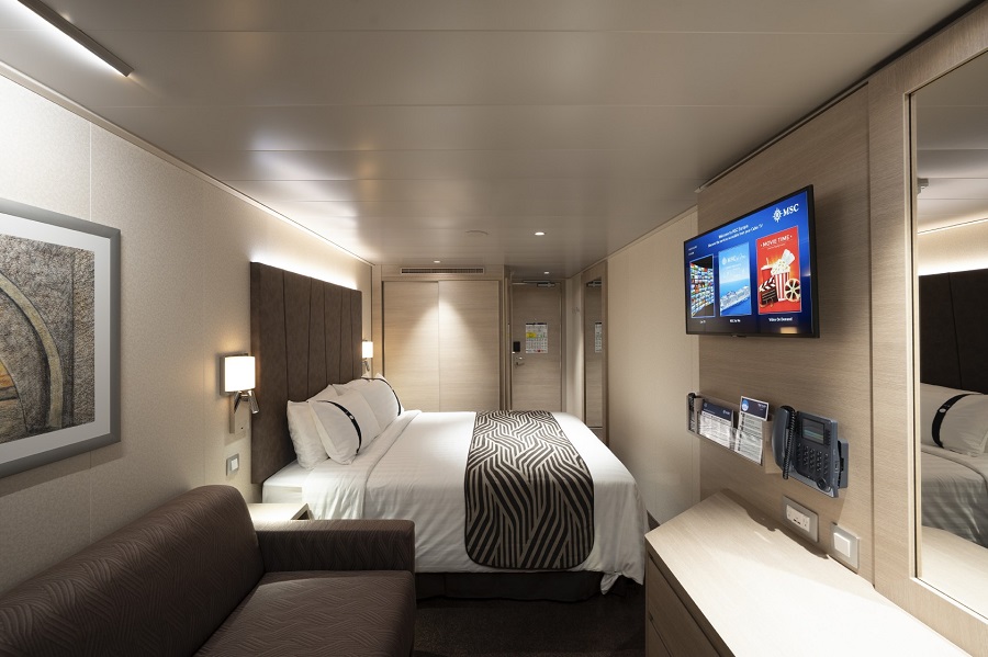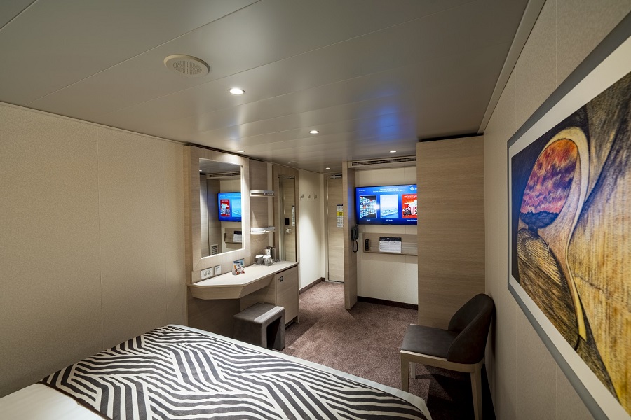 | Guaranty | Внутренняя DBL Внутренняя DBL – двухместная каюта (гарантированная), номер каюты будет известен только перед началом круиза.Максимальная вместимость: 4 человека. Дополнительные спальные места – откидные кровати над основными спальными местами. В каюте: две односпальные кровати (при необходимости трансформируются в двуспальную кровать), ванная комната (раковина, душ, туалет), телефон, фен, мини-бар, сейф, кондиционер, интерактивное TV, беспроводной интернет (оплачивается дополнительно), каюта без окна. | 2-местное размещение | ✔ |