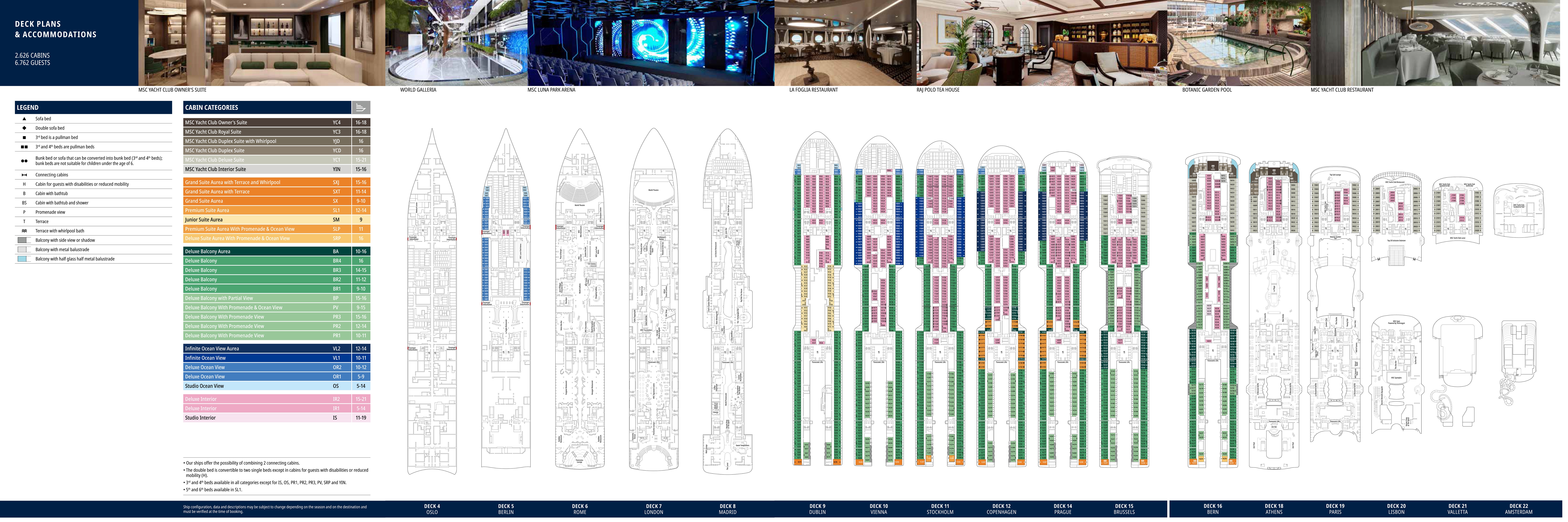 | Guaranty | С балконом DBL С балконом DBL – двухместная каюта (гарантированная), номер каюты будет известен только перед началом круиза.Максимальная вместимость: 4 человека. Дополнительные спальные места – двухъярусная кровать или диван, трансформирующийся в двухъярусную кровать, и/или раскладной диван. В каюте: две односпальные кровати (при необходимости трансформируются в двуспальную кровать), ванная комната (раковина, душ, туалет), телефон, фен, мини-бар, сейф, кондиционер, интерактивное TV, беспроводной интернет (оплачивается дополнительно), стеклянная балконная дверь-окно, персональный балкон с мебелью для отдыха. | 2-местное размещение | ✔ |