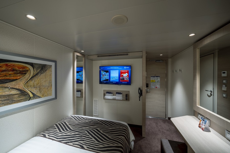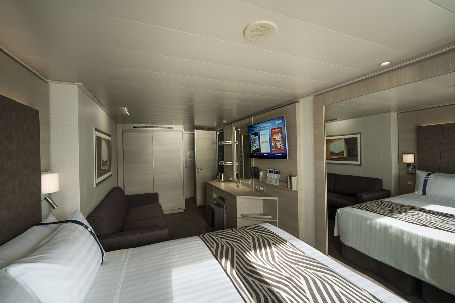 | Guaranty | Внутренняя SNGL Внутренняя SNGL – одноместная каюта (гарантированная), номер каюты будет известен только перед началом круиза.Максимальная вместимость: 1 человек.В каюте: одна двуспальная кровать (при необходимости трансформируются в две односпальные), ванная комната (раковина, душ, туалет), телефон, фен, мини-бар, сейф, кондиционер, интерактивное TV, беспроводной интернет (оплачивается дополнительно), каюта без окна. | 1-местное размещение | ✔ |