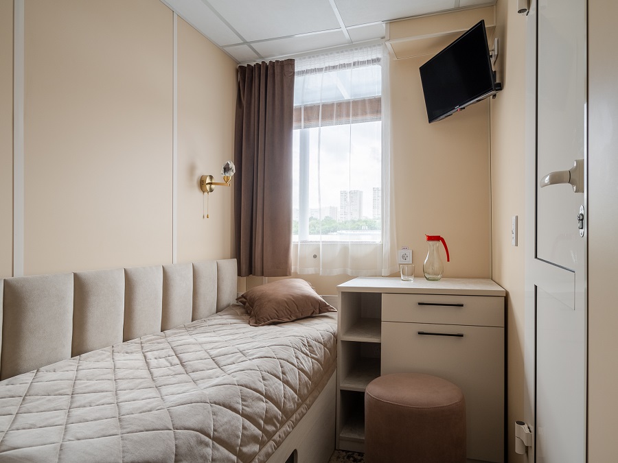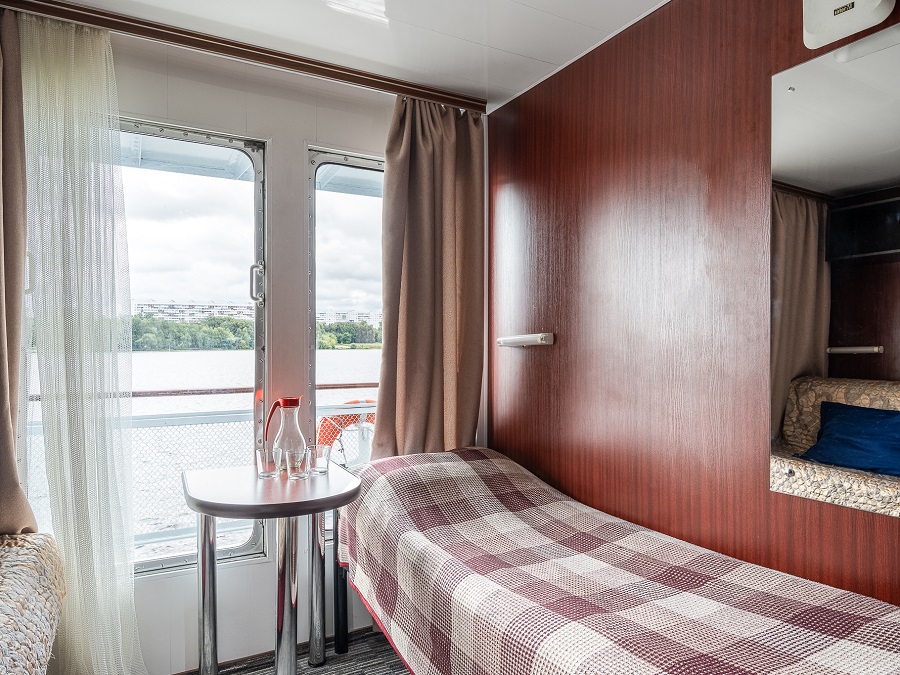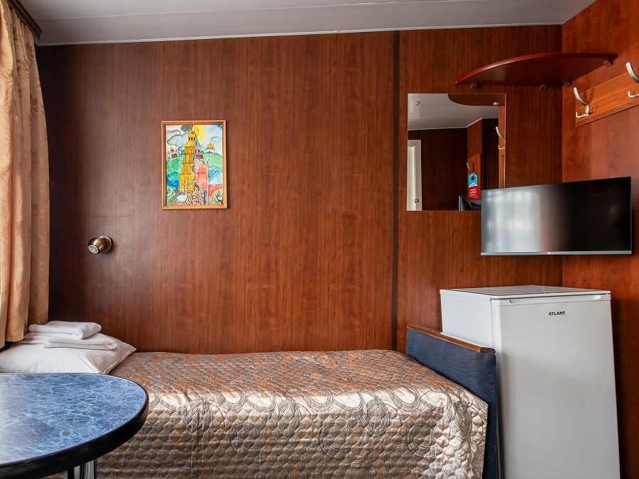 | Средняя палуба | А1 К категории А1 относятся каюты: 200, 201, 224, 226, 227, 300. Одноместная каюта со всеми удобствами, расположенная на средней и шлюпочной палубах.В каюте: односпальная кровать, ванная комната (раковина, душ, туалет), шкаф для одежды, стол, холодильник, фен, телевизор, общая система вентиляции, обзорные окна. | 1-местное размещение | ✔ |