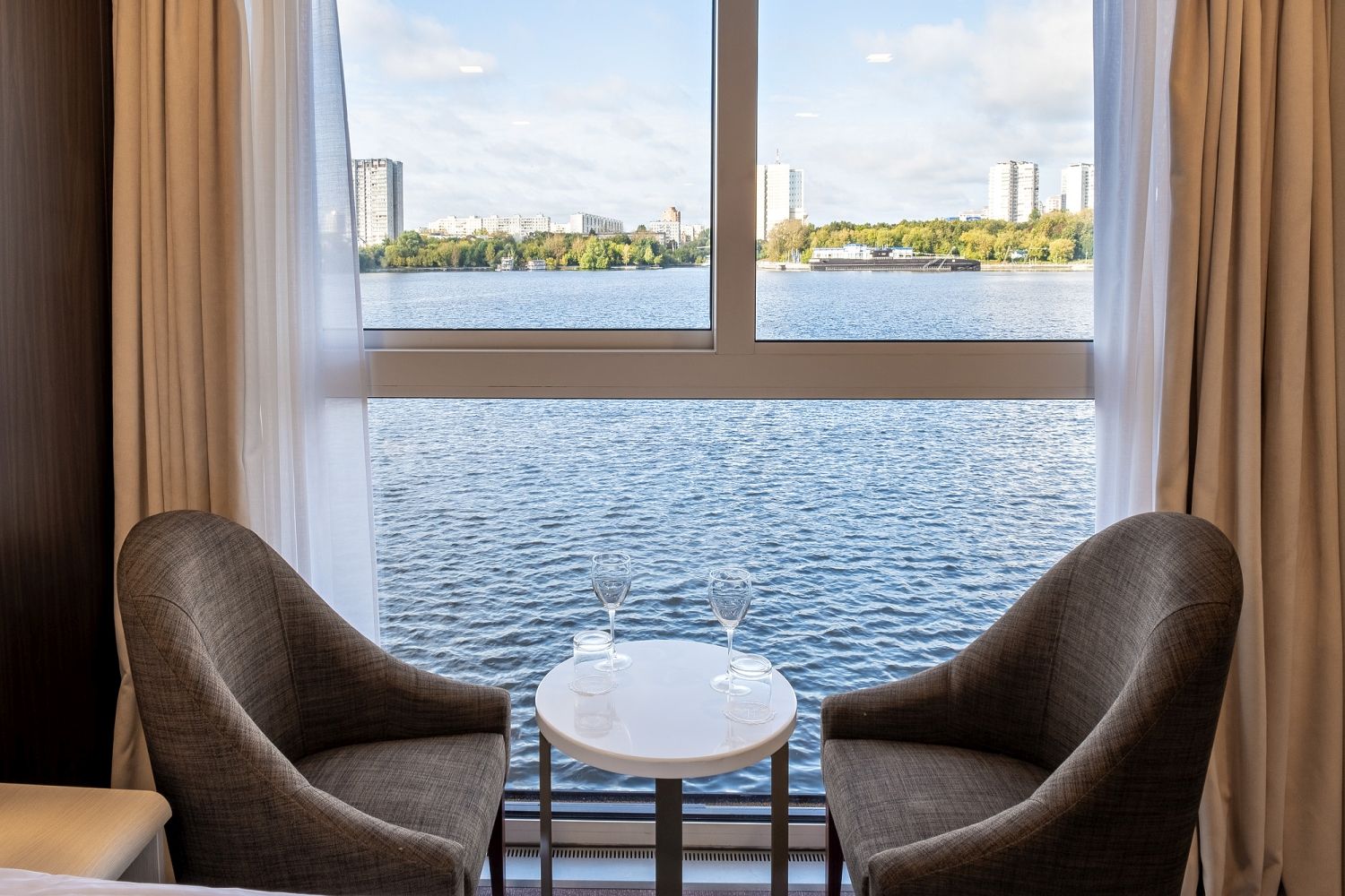 | Средняя палуба | Люкс двухместный Просторные каюты с двуспальной кроватью и мягкой зоной для отдыха В каюте: двуспальная кровать (раздвигается), диван, панорамные окна, спутниковое ТВ, шкаф для одежды, холодильник, кондиционер, розетки 220V, телефон, радио, фен, капсульная кофемашина, электрочайник, сейф, ванна или душ, санузел. Площадь — до 37 м2. В каюте № 255 - душ. Площадь каюты - 28 м2.В каюте № 255 размер дивана в разобранном виде - 137х170 см.В каютах № 251, 252, 253, 254, 256 - ванна. Площадь каюты - 37 м2.В каютах № 251, 252, 253, 254, 256 размер дивана в разобранном виде - 105х170 см.Дополнительные привилегии для гостей кают класса «Люкс двухместный»: —бутилированная питьевая вода (ежедневное пополнение): 2 бутылки (0,5л) / чел. в день;—капсульная кофемашина: 2 капсулы / чел. в день;—игристое вино (1 бутылка на каюту) в день посадки, без пополнения;—мини-бар бесплатно в день посадки, после пополнения в остальные дни рейса – платно, по действующему прайс-листу;—расширенный косметический набор Natura Siberica в дополнении к стандартному: молочко/лосьон для тела, зубной и бритвенный наборы.Компания оставляет за собой право изменить перечень указанных привилегий без предварительного уведомления. | 2-местное размещение | нет |