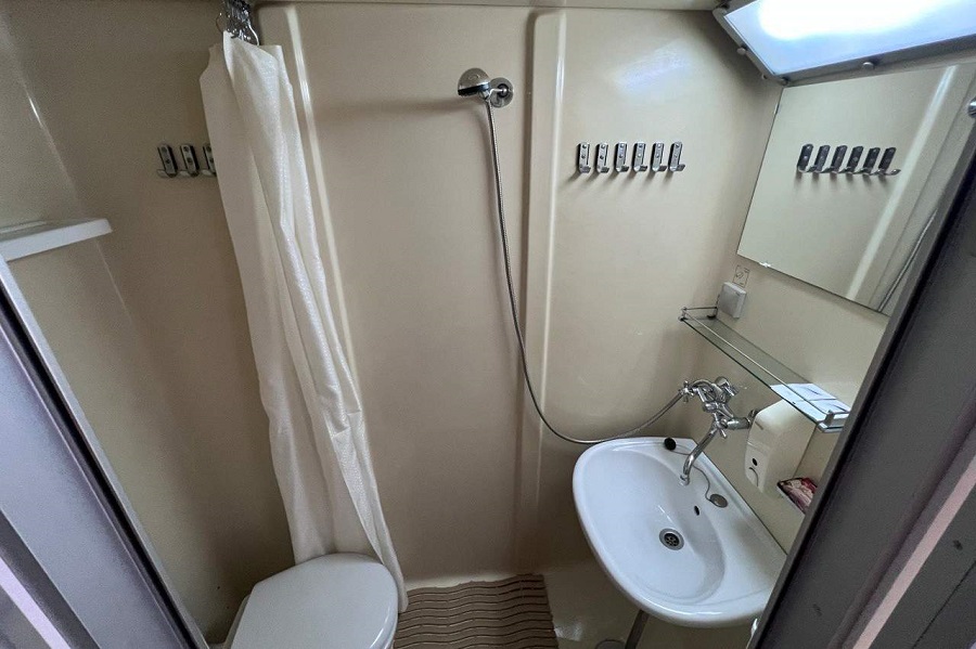 | Нижняя палуба | 4-местная (нижняя палуба) К категории 4-местная (нижняя палуба) относятся каюты: 107–110.Четырехместная каюта со всеми удобствами, расположенная на нижней палубе. Площадь каюты ≈ 12 м². Доступ к Wi-Fi предоставляется с ограничением трафика. В каюте: четыре односпальные кровати (две внизу, две на верхнем ярусе), кондиционер/обогреватель, холодильник, телевизор, сейф, внутренний телефон, фен, стеклянные стаканы для питья, щетка для одежды, иллюминаторы (нельзя открыть).В ванной комнате: душ, зеркало, 2 стакана, туалетные принадлежности (мыло, шампунь, гель для душа, туалетная бумага), комплект полотенец (полотенце банное большое, полотенце для рук среднее). | 2-местное размещение | ✔ |