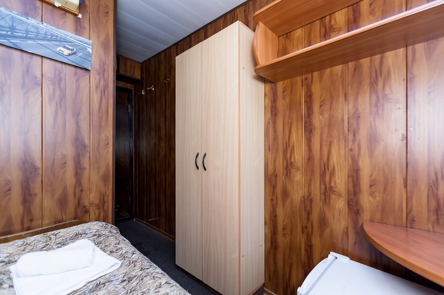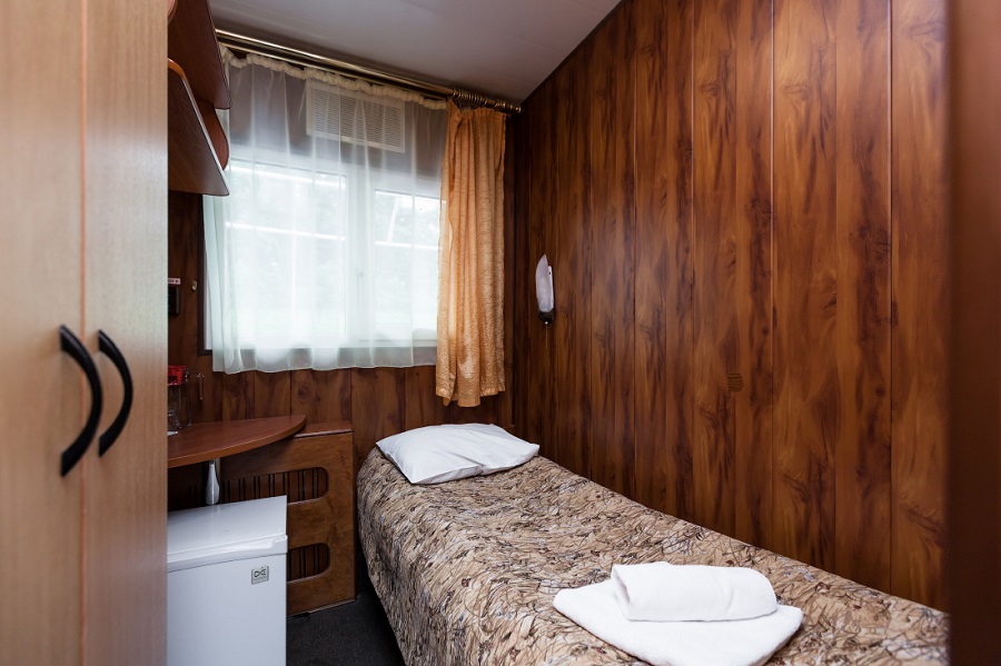 | Средняя палуба | 1 К категории 1 относятся каюты: 1–4, 13, 14, 28, 63, 64.Одноместная каюта со всеми удобствами, расположенная на главной и средней палубах. Каюты 63, 64 – без кондиционера. В каюте: односпальная кровать, ванная комната (раковина, душ, туалет), кондиционер, холодильник, обзорное окно. | 1-местное размещение | ✔ |