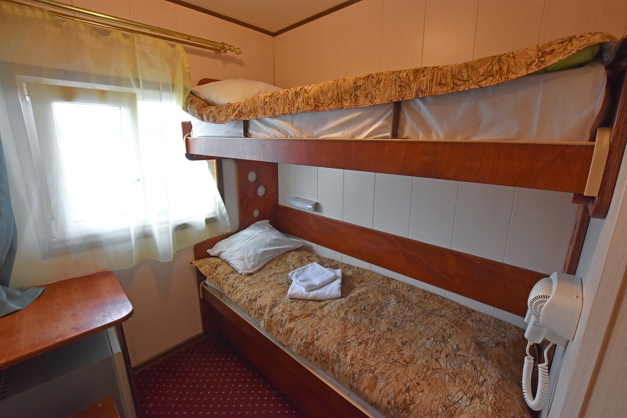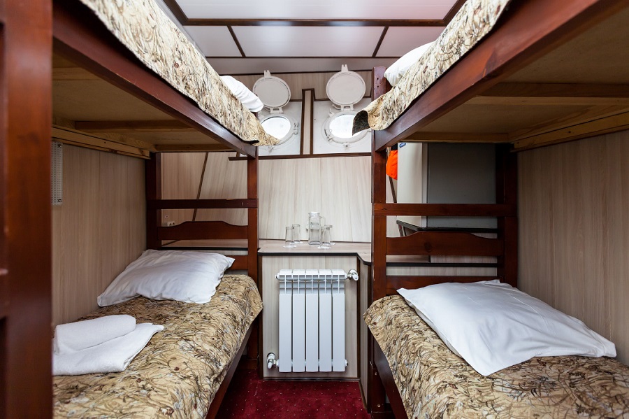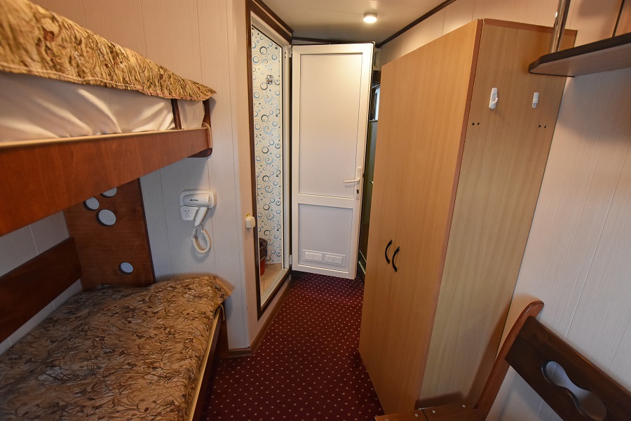 | Средняя палуба | 1Б К категории 1Б относятся каюты: 17, 25, 31.Двухместная двухъярусная каюта со всеми удобствами, расположенная на средней палубе.В каюте: двухъярусная кровать, ванная комната (раковина, душ, туалет), кондиционер, холодильник, обзорное окно. | 2-местное размещение | ✔ |
