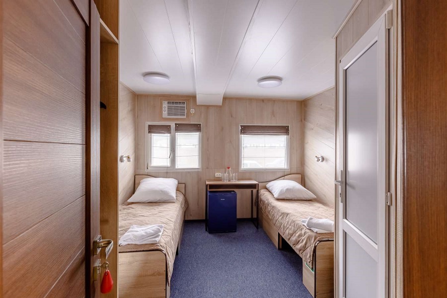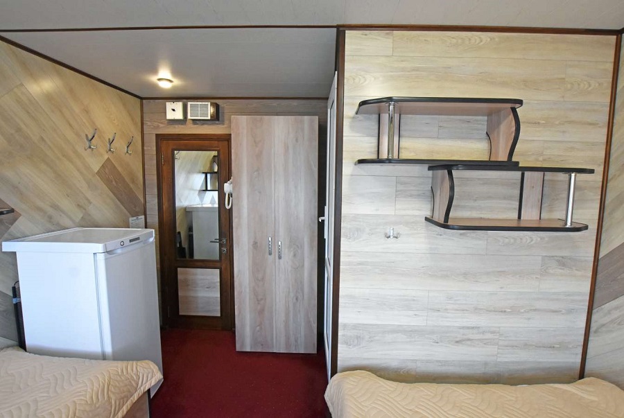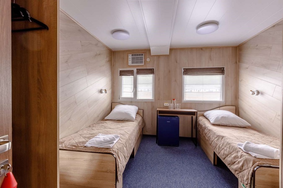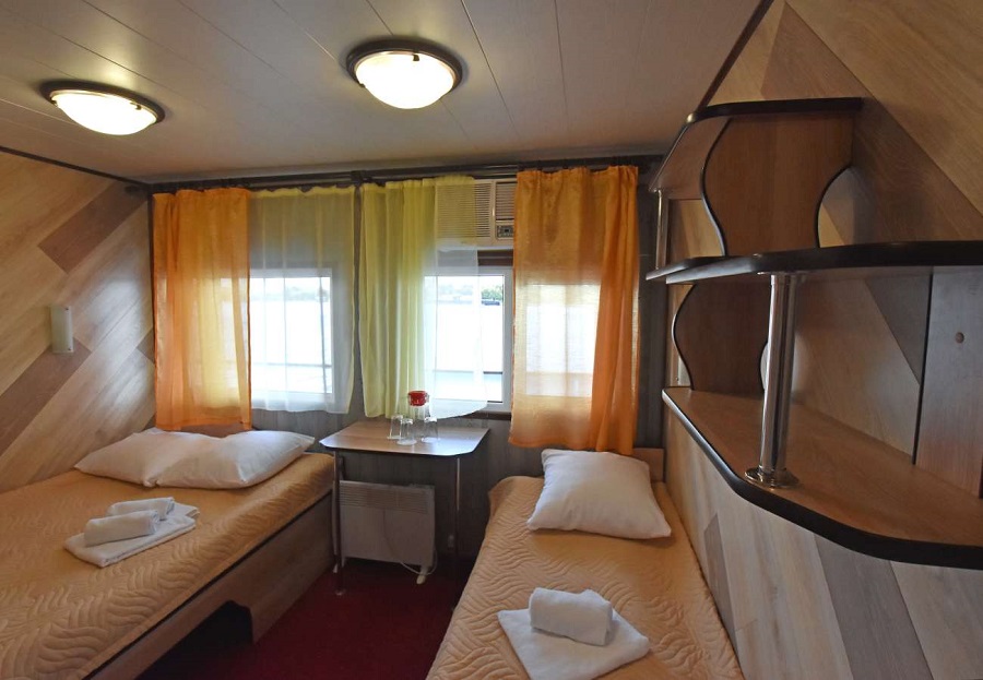 | Средняя палуба | 1А К категории 1А относятся каюты: 5–12. Двухместная каюта со всеми удобствами, расположенная на средней палубе. В каюте: две односпальные кровати, ванная комната (раковина, душ, туалет), кондиционер, холодильник, обзорное окно. | 2-местное размещение | ✔ |