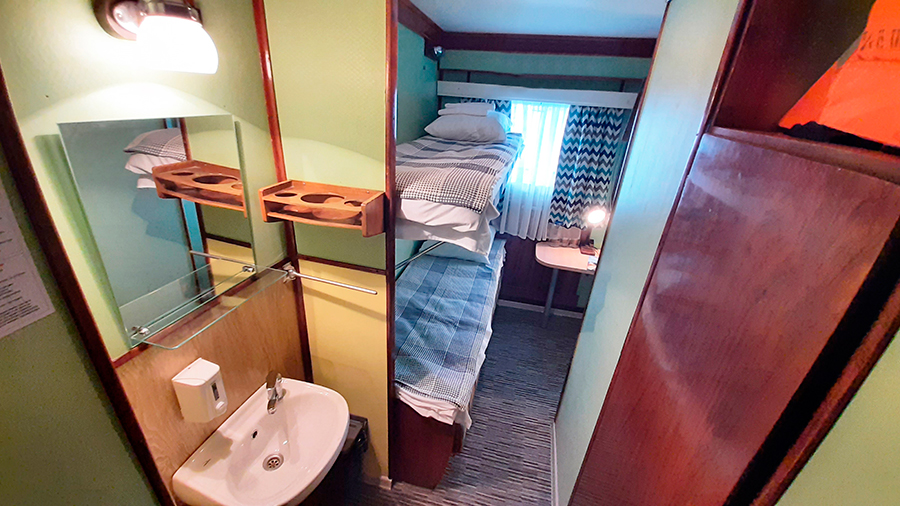 Главная палуба | Сигма 2-местная К категории Сигма 2-местная относятся каюты: 112, 224, 226, 227, 235, 237.Двухместная двухъярусная каюта со всеми удобствами, расположенная на главной и средней палубах.Площадь каюты ≈ 5,5 м².В каюте: двухъярусная кровать, ванная комната (раковина, душ, туалет), кондиционирование, обзорное окно. | 2-местное размещение | нет |