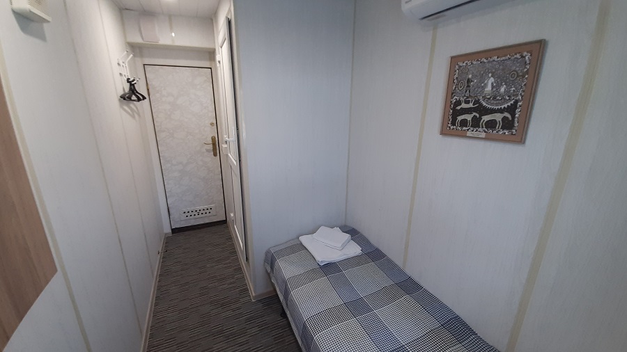 Средняя палуба | Сигма 1-местная К категории Сигма 1-местная относятся каюты: 221, 228–231.Одноместная каюта со всеми удобствами, расположенная на средней палубе.Площадь каюты ≈ 5,5 м².В каюте: односпальная кровать, ванная комната (раковина, душ, туалет), кондиционирование, обзорное окно. | 1-местное размещение | нет |