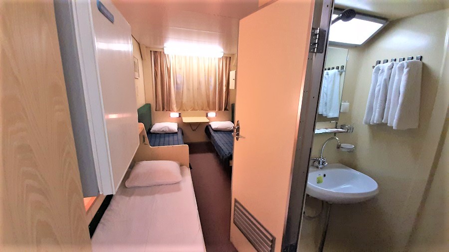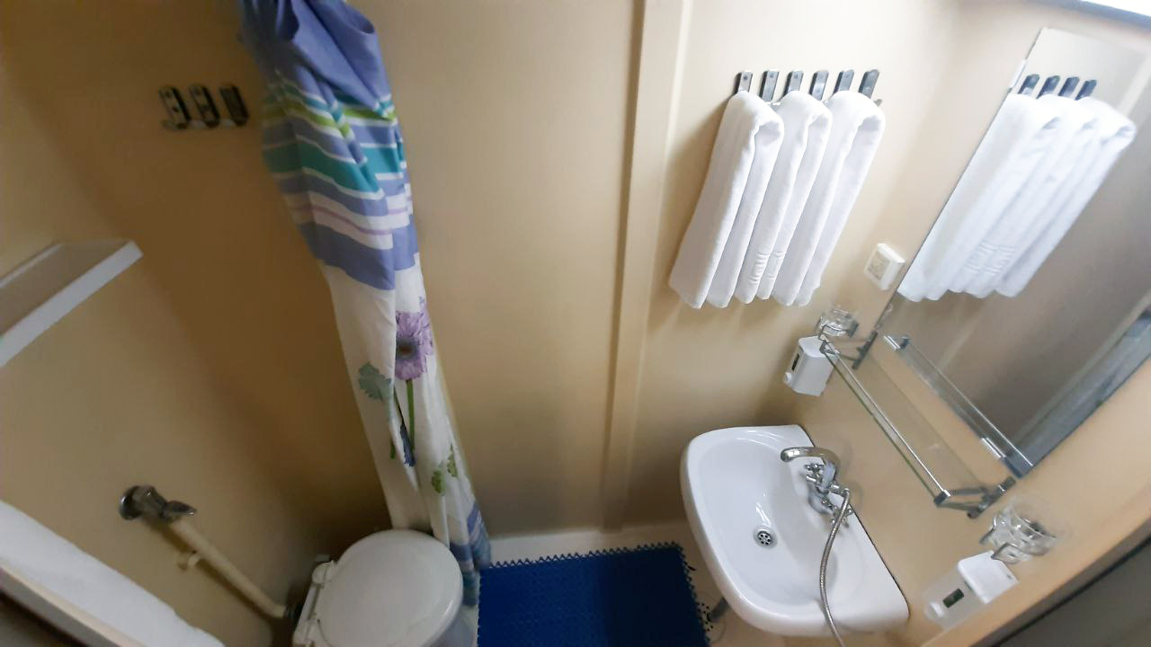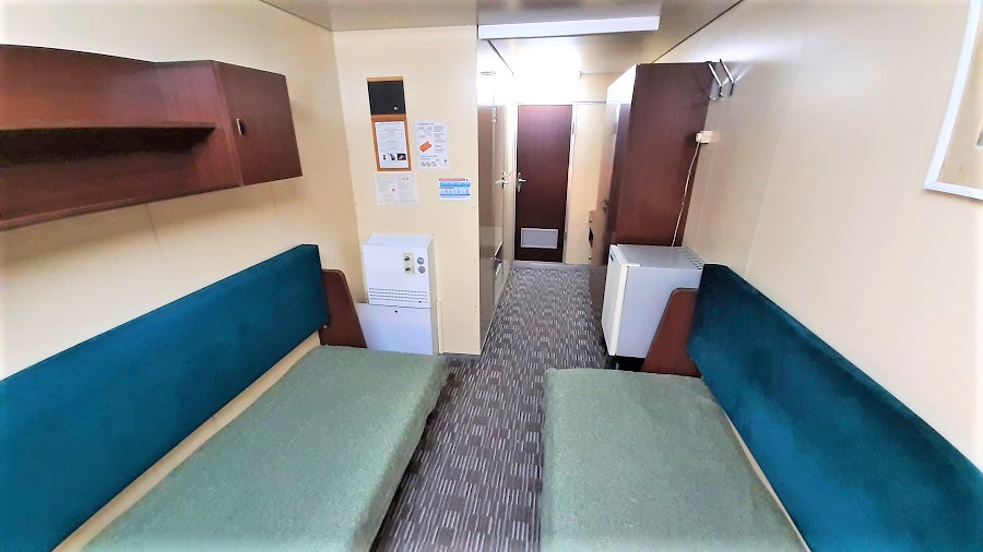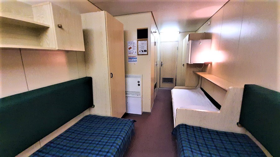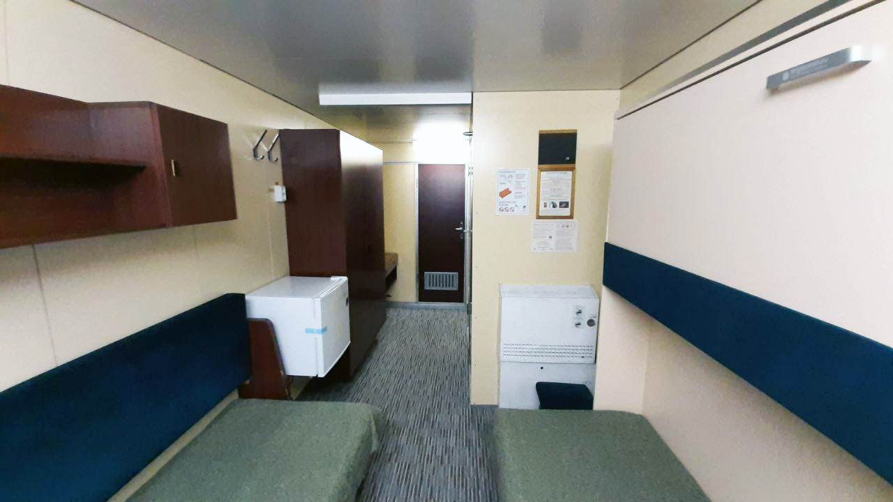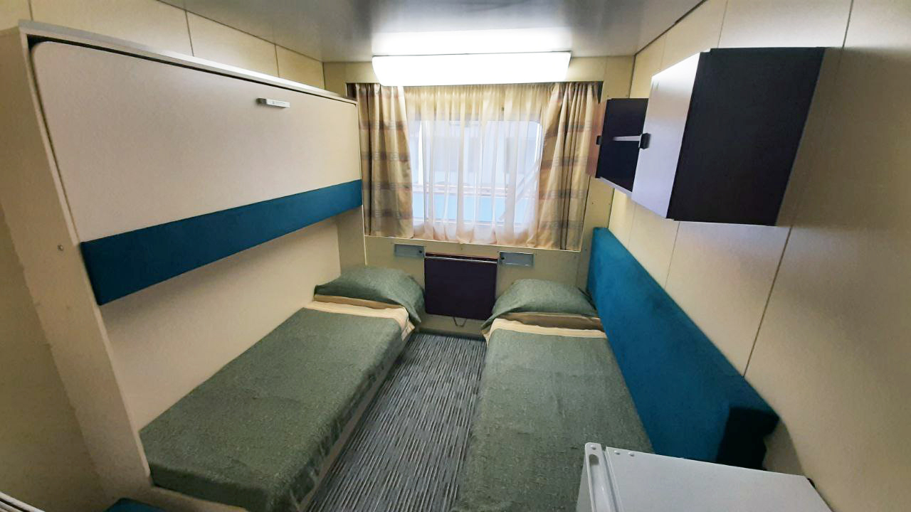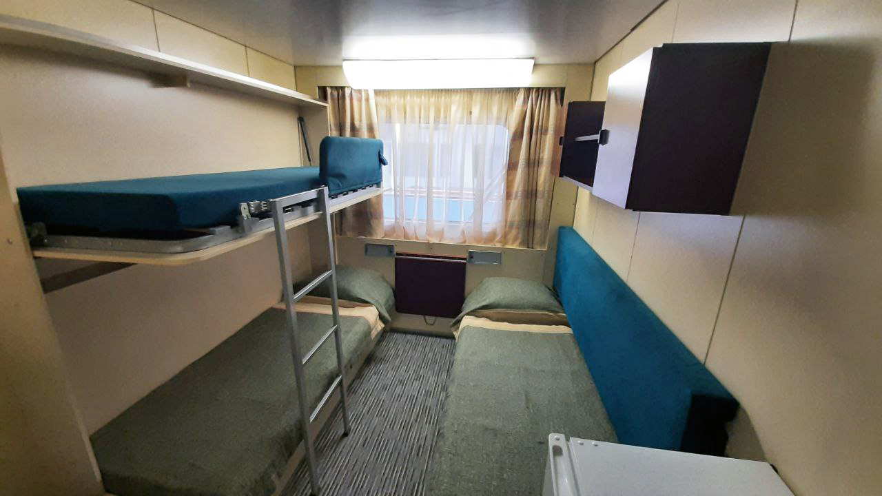 | Нижняя палуба | Бета К категории Бета относятся каюты: 101–120.Трехместная каюта со всеми удобствами, расположенная на нижней палубе.Площадь каюты ≈ 10,5 м². Возможно двухместное размещение в каюте. В каюте: три односпальные кровати, ванная комната (раковина, душ, туалет), шкаф для одежды, кондиционер, холодильник, радио, розетка 220 V, два иллюминатора. | 3-местное размещение | ✔ |