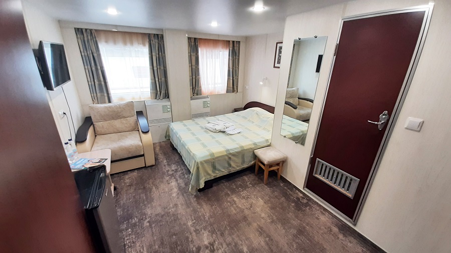 | Средняя палуба | Альфа (средняя палуба) К категории Альфа (средняя палуба) относятся каюты: 329–354.Двухместная каюта со всеми удобствами, расположенная на средней палубе.Площадь каюты ≈ 10 м².В каюте: две односпальные кровати, ванная комната (раковина, душ, туалет), шкаф для одежды, кондиционер, холодильник, радио, розетка 220 V, окно. | 2-местное размещение | нет |