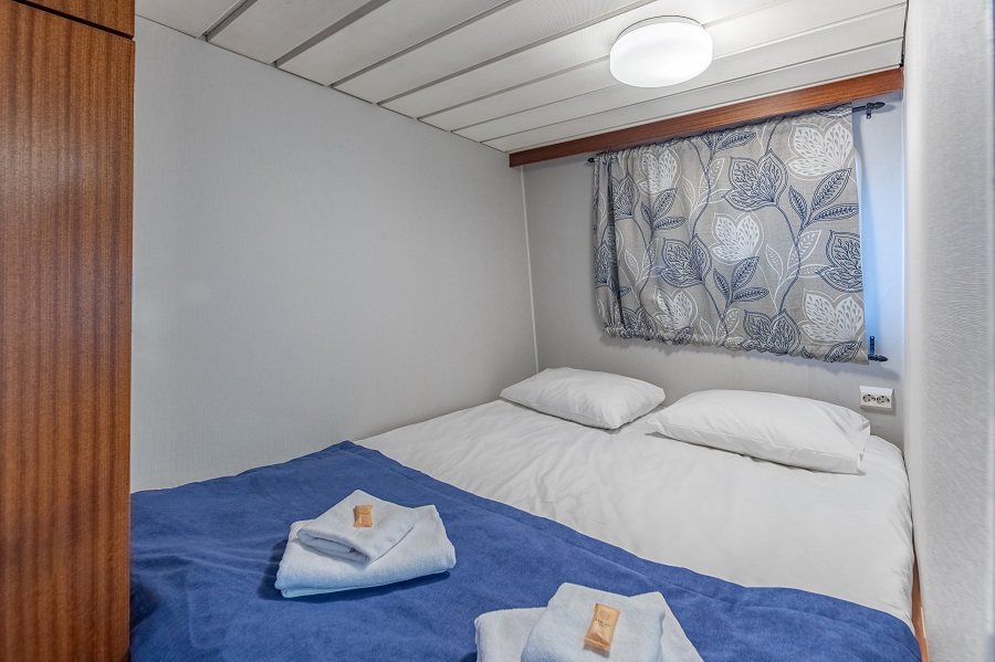 500 уровень | Мини люкс К категории Мини люкс относятся каюты: 510, 517.Двухместная каюта со всеми удобствами, расположенная на 500 уровне.Площадь каюты ≈ 18 м². В каюте 517 возможно размещение третьего человека на дополнительном спальном месте. В каюте: одна двуспальная кровать, диван, стол, шкаф для одежды, навесная полка, ванная комната (раковина, душ, туалет), окно. | 2-местное размещение | ✔ |