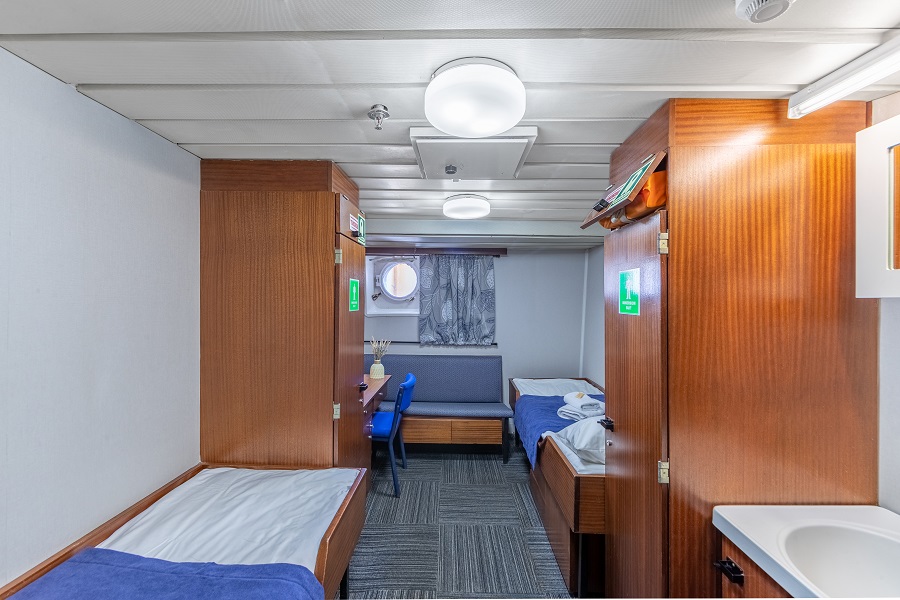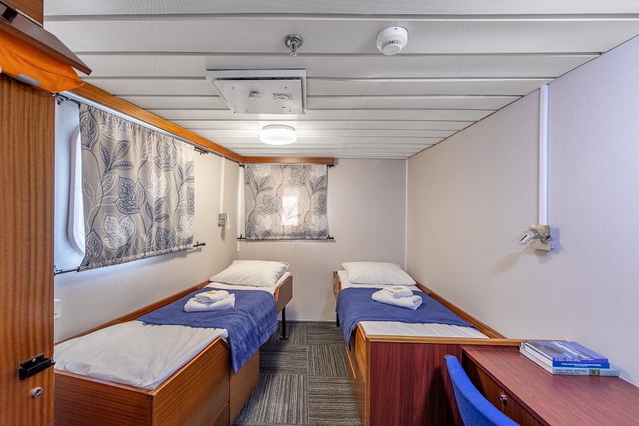 400 уровень | Супериор К категории Супериор относятся каюты: 413, 415, 418, 420.Двухместная каюта со всеми удобствами, расположенная на 400 уровне.Площадь каюты ≈ 12 м². В каютах 413, 420 – двухъярусная кровать и диван. В каюте: две односпальные кровати, стол, шкаф для одежды, тумбочки, ванная комната (раковина, душ, туалет), окно. | 2-местное размещение | ✔ |