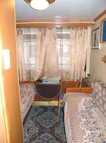 | Средняя палуба | ПК+1 К категории ПК+1 относятся каюта: 233А.Трехместная каюта со всеми удобствами, расположенная на средней палубе. Возможно размещение четвертого человека на дополнительном спальном месте – верхняя полка. В каюте: три односпальных кровати и четвертое место верхнее, ванная комната (раковина, душ, туалет), холодильник, стол, шкаф для одежды, радио, розетка 220V, обзорные окна. | 3-местное размещение | нет |