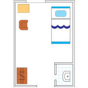 | Главная палуба | А1 К категории А1 относятся каюты: 109, 110.Одноместная каюта со всеми удобствами, расположенная на главной палубе.В каюте: односпальная кровать, тумбочка, ванная комната (раковина, душ, туалет), радио, холодильник, стул, шкаф для одежды, розетка 220 V, обзорное окно. | 1-местное размещение | нет |
